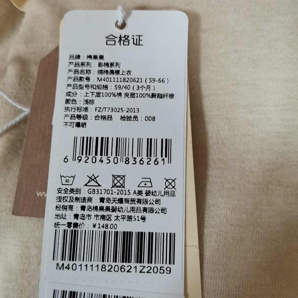 棉果果冬季新疆彩棉男童女童铺棉偏襟上衣M401111820621