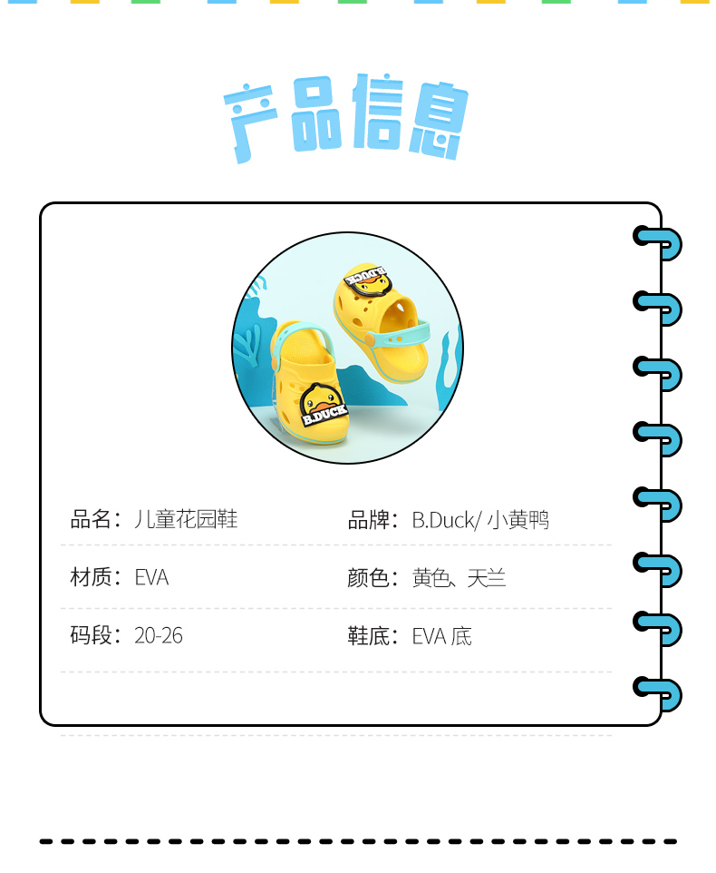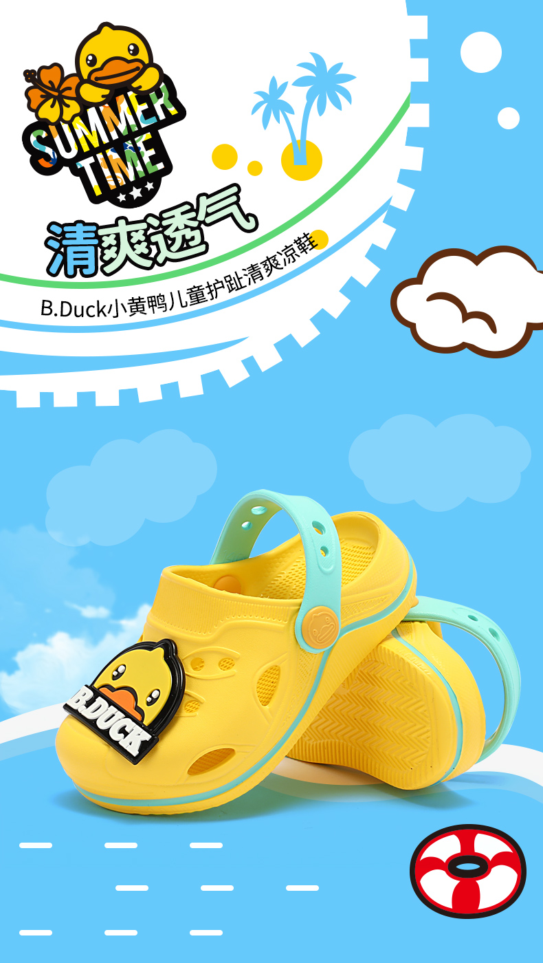 B.Duck小黄鸭童鞋夏季儿童凉拖鞋洞洞鞋18-32 BY1175352