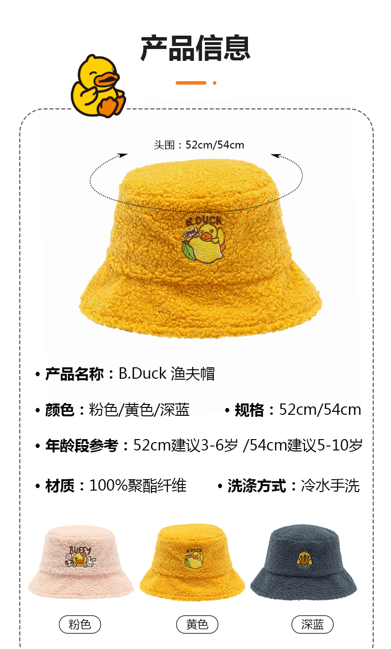 【专柜同款精品】B.Duck儿童盆帽52CM/54CM