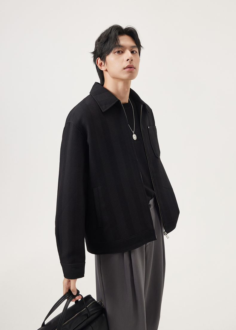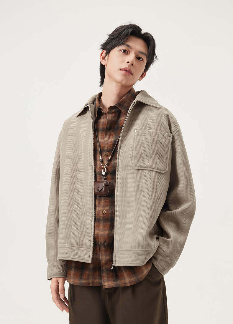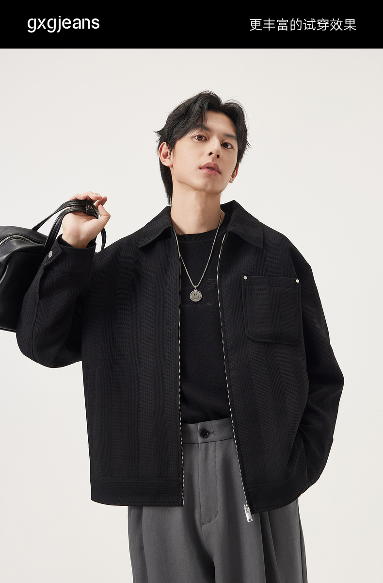 gxg.jeans男装 多色肌理感条纹满印宽松翻领夹克外套男士25秋热卖
