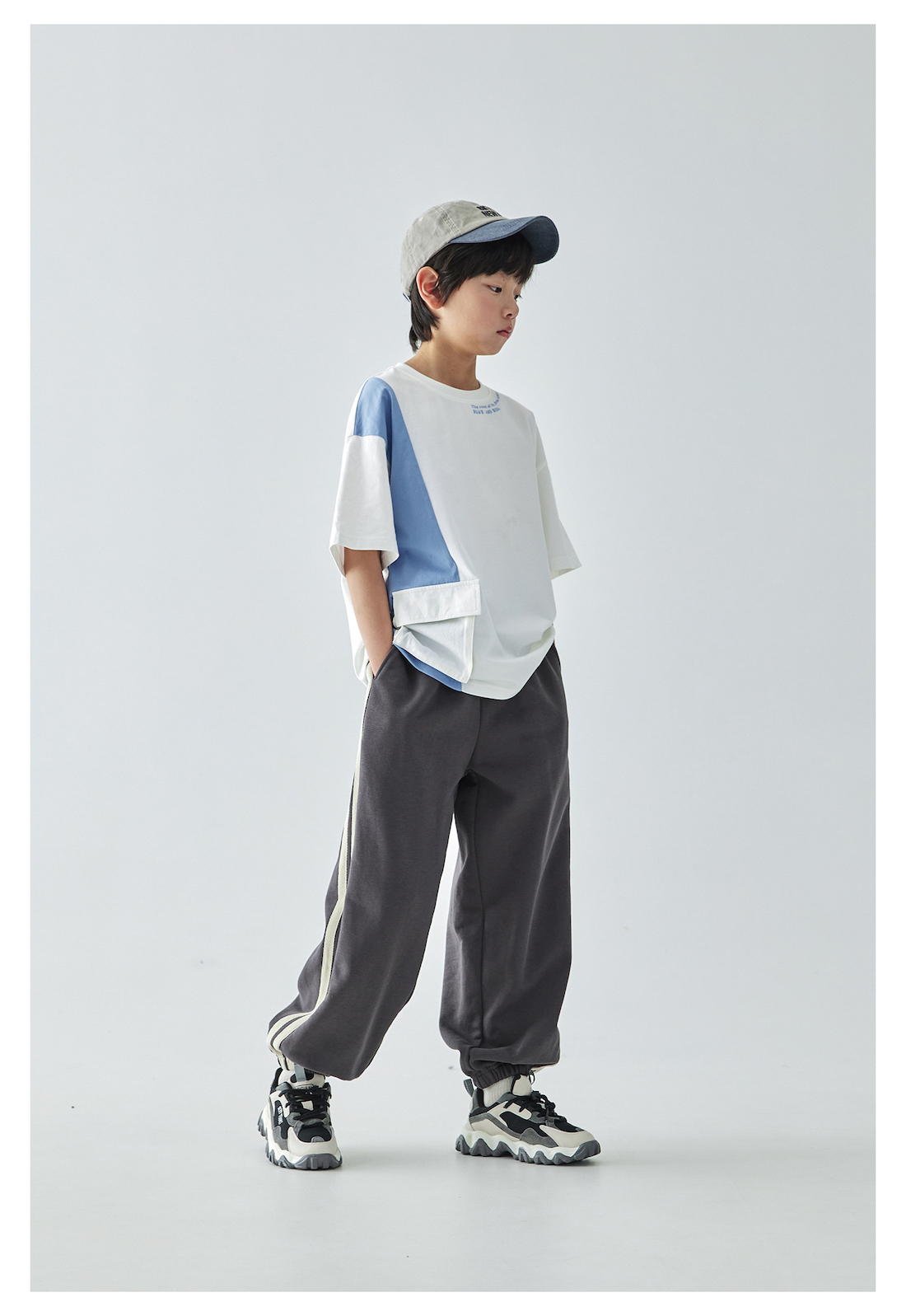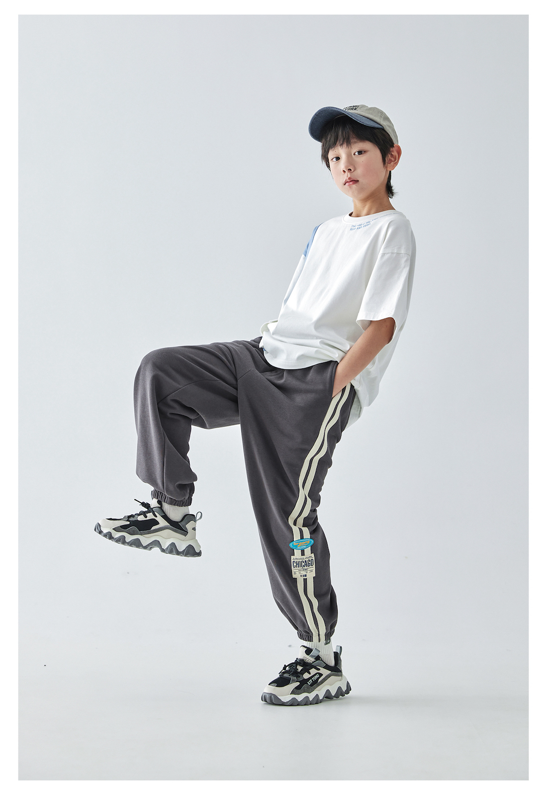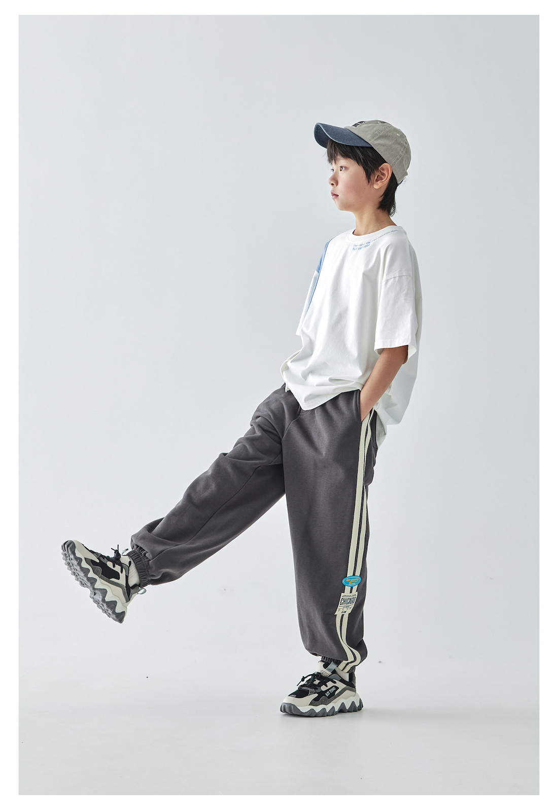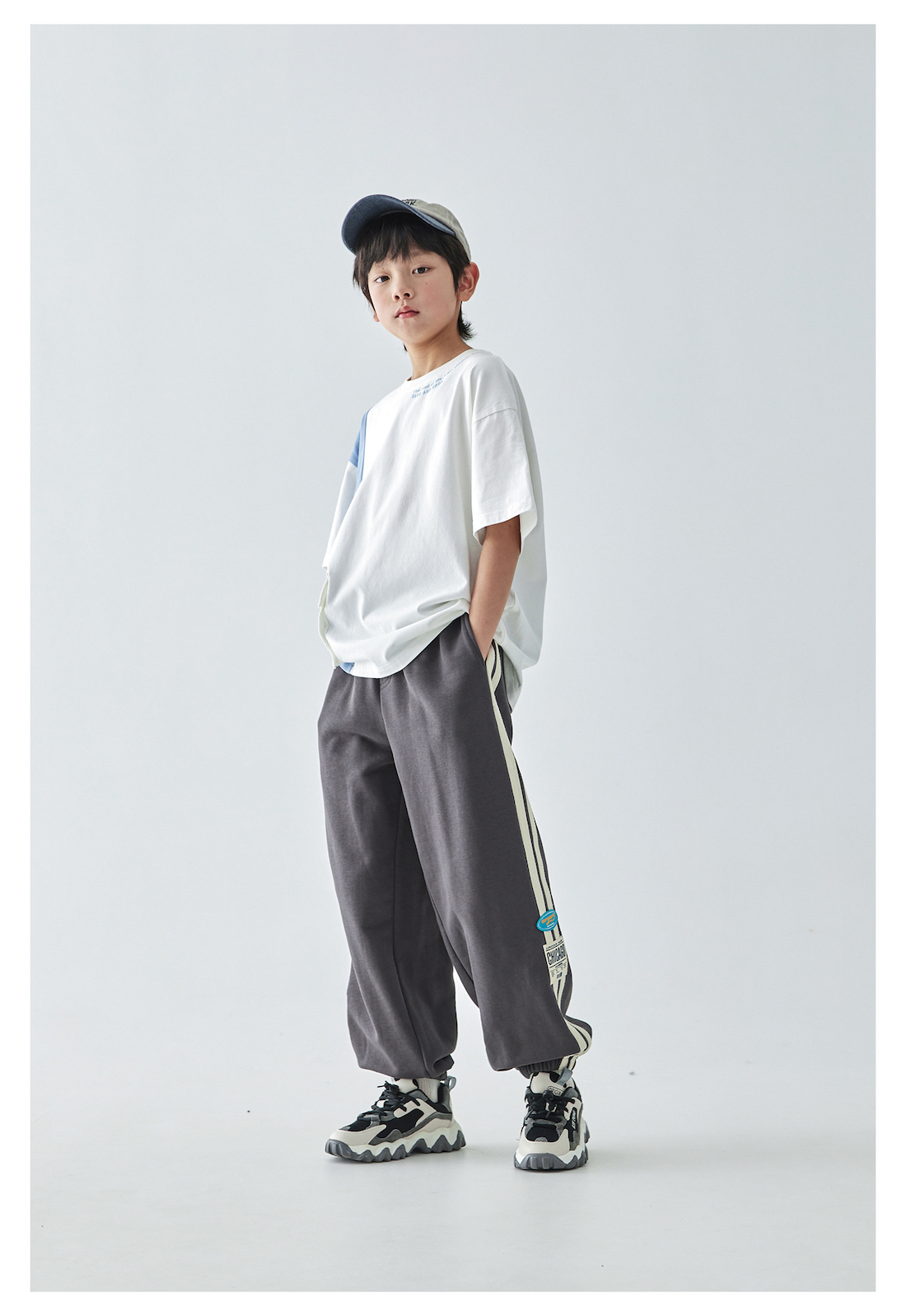 蓝汽水25年新款宽松休闲织带卫裤男童春季侧缝双条撞色织标束脚裤
