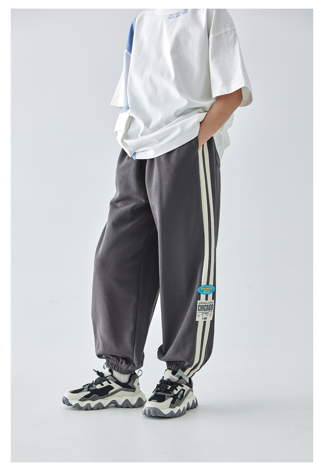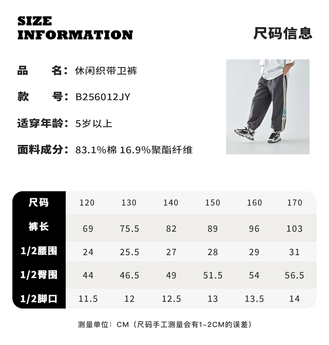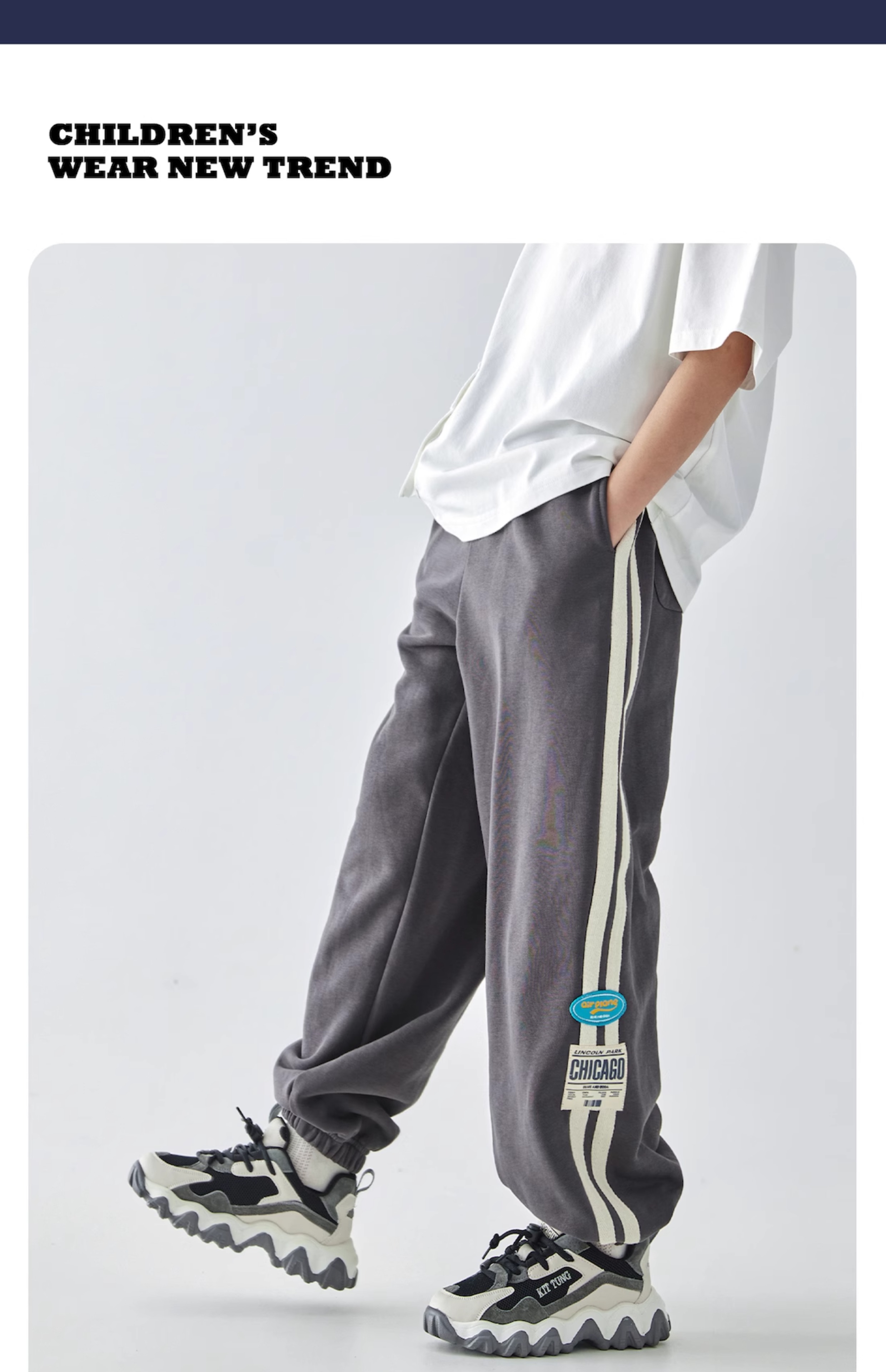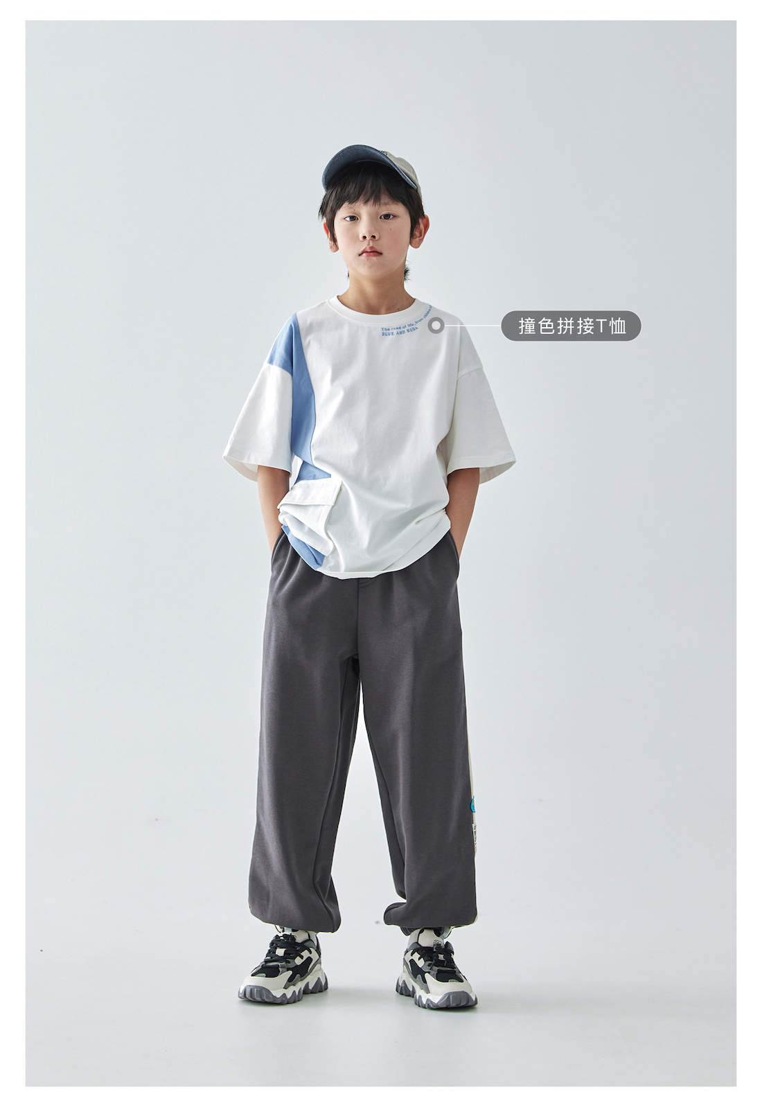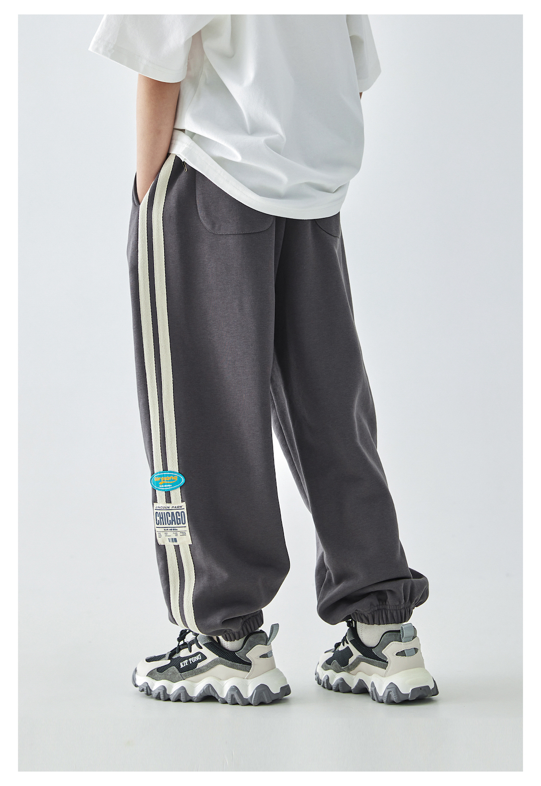 蓝汽水25年新款宽松休闲织带卫裤男童春季侧缝双条撞色织标束脚裤