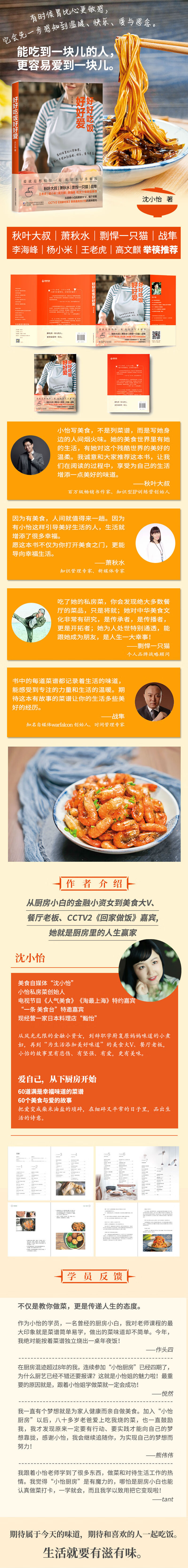 “一条美食台”、电视节目《人气美食》《淘zui上海》特邀嘉宾——沈小怡带来了她的压箱底儿菜谱!需要提前6个月预定的小怡私房菜的秘密,这本书都讲给你听。不仅为你打开美食之门,更能导向幸福生活。