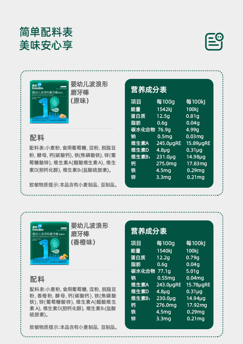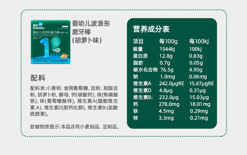 英氏婴幼儿辅食磨牙棒原味宝宝零食营养高钙出牙棒饼干64g各种口味系列/YIS-908803/YIS-910233/YIS-960702