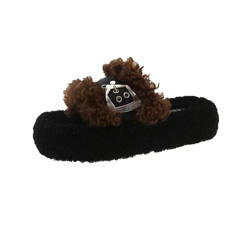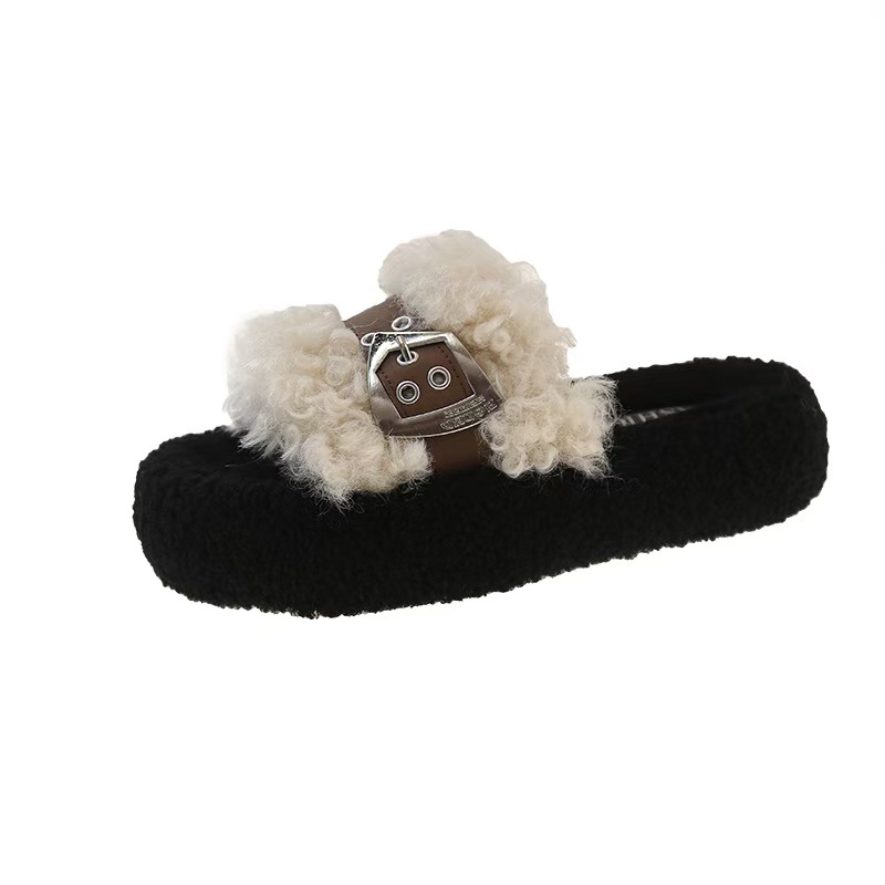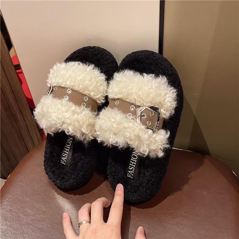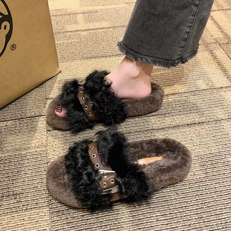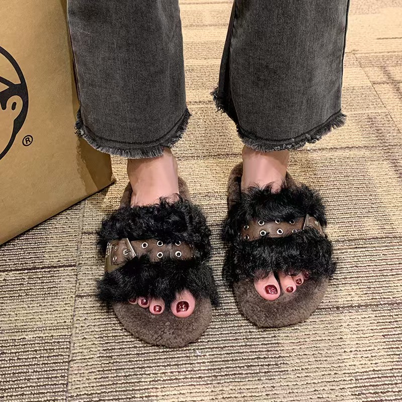 西村名物2024年冬季新款泰迪卷毛毛拖鞋秋冬外穿居家拖鞋XZ4DA06151