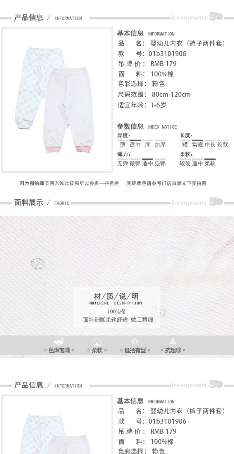 丽婴房-内衣类(秋)B82件装长裤 N组合装粉