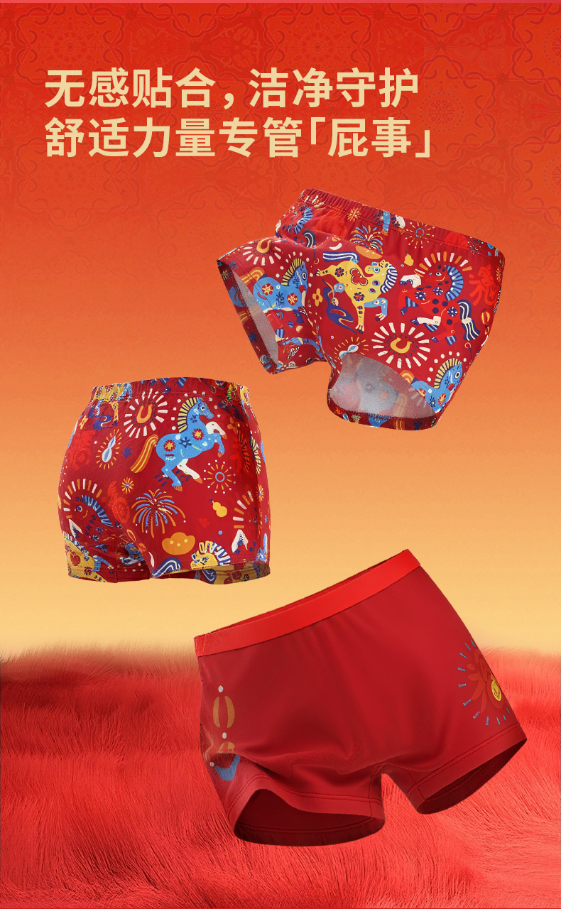 【云优选】年衣童装儿童平角内裤家居新中式生肖本命年盛世跃马内裤组合
