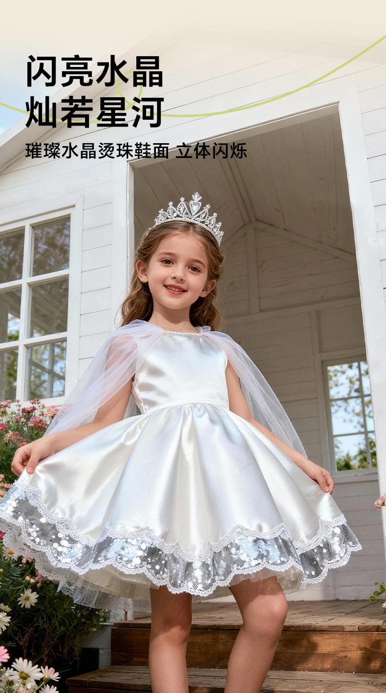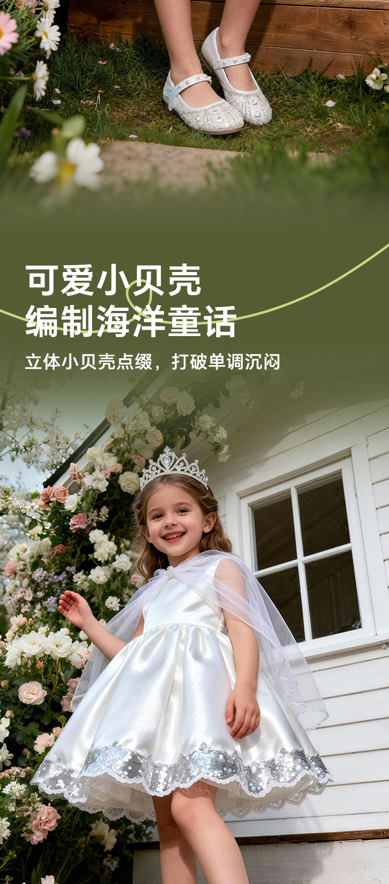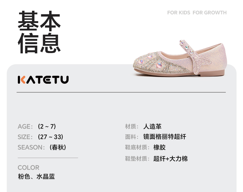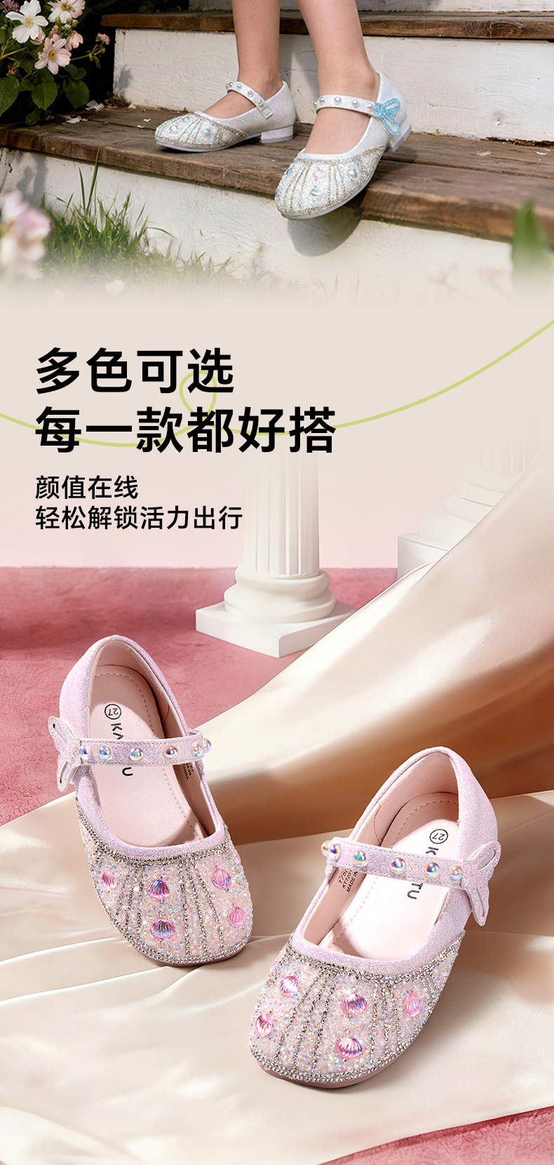 卡特兔女童水晶公主鞋2026年春季新品女童鞋子配裙子水钻女童皮鞋