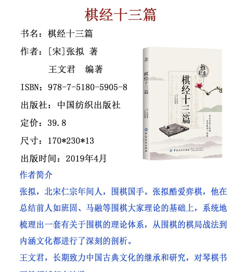 正版书籍 雅玩集:棋经十三篇 张拟 古典围棋理论 围棋战略作品 历代下棋经验 传统文化了解围棋文化围棋史上#重要理论著作之一