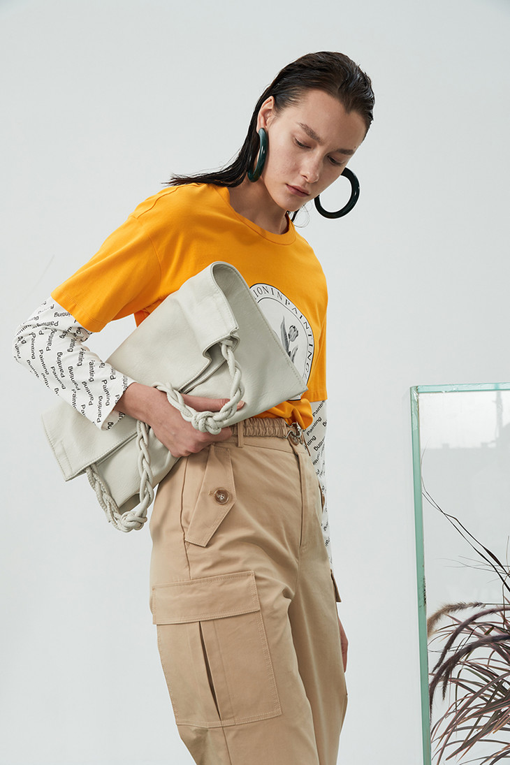 NEELLY春新款配腰带纯棉工装风宽松休闲长裤女N082001AH038