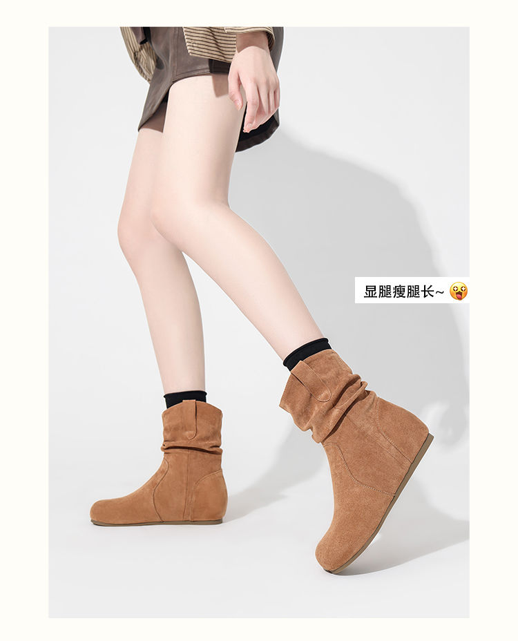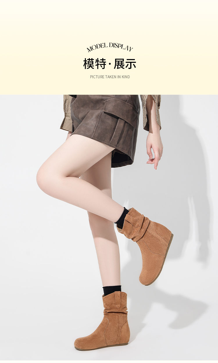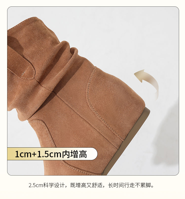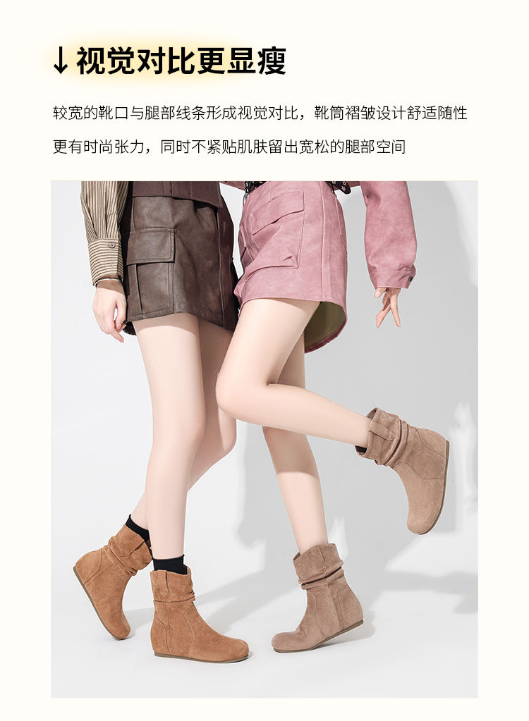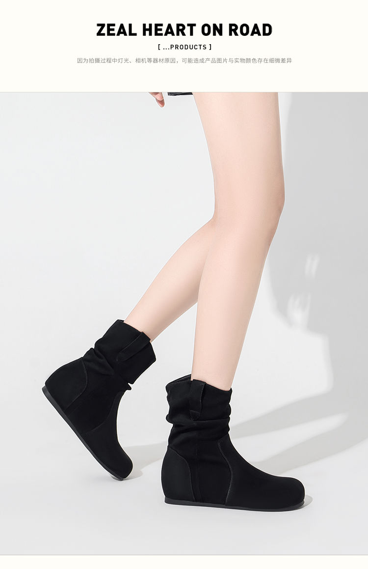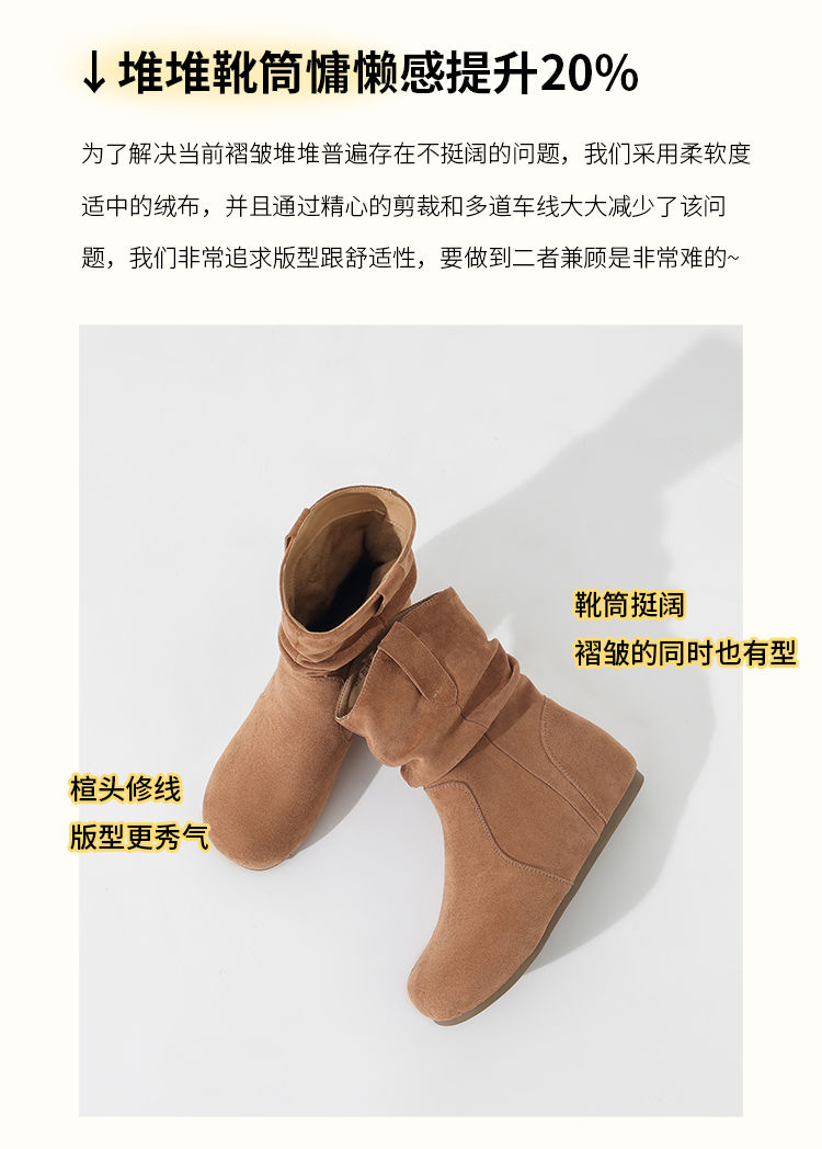 ZHR则则复古堆堆靴女2024新款内增高洋气小短靴加绒时尚绒面女靴