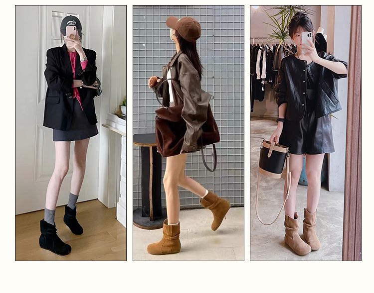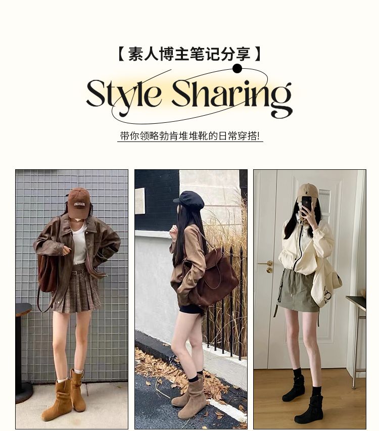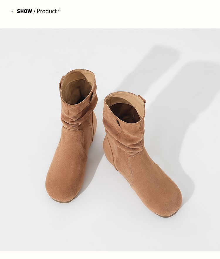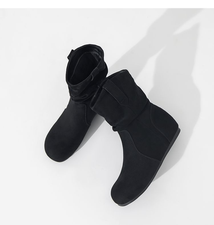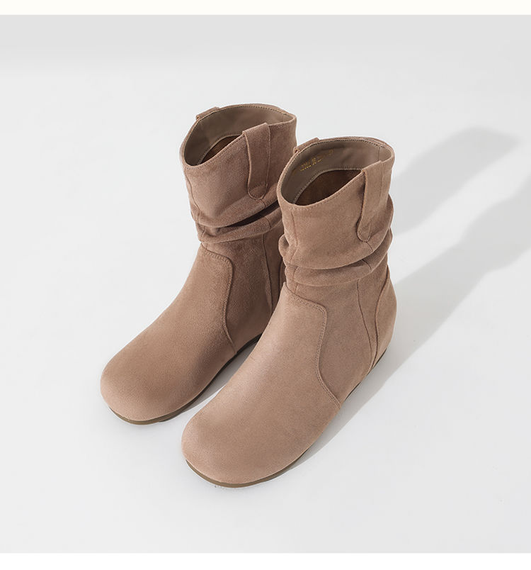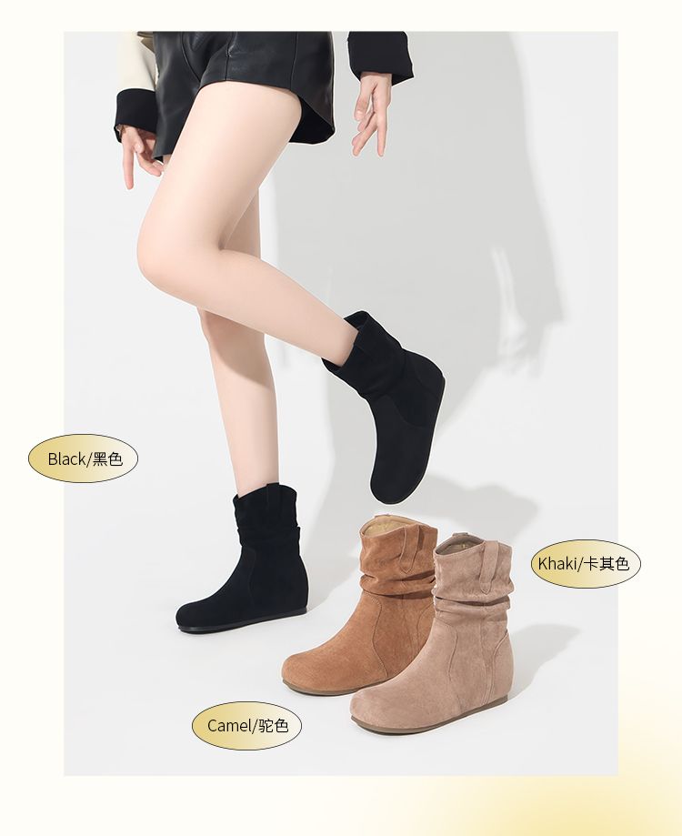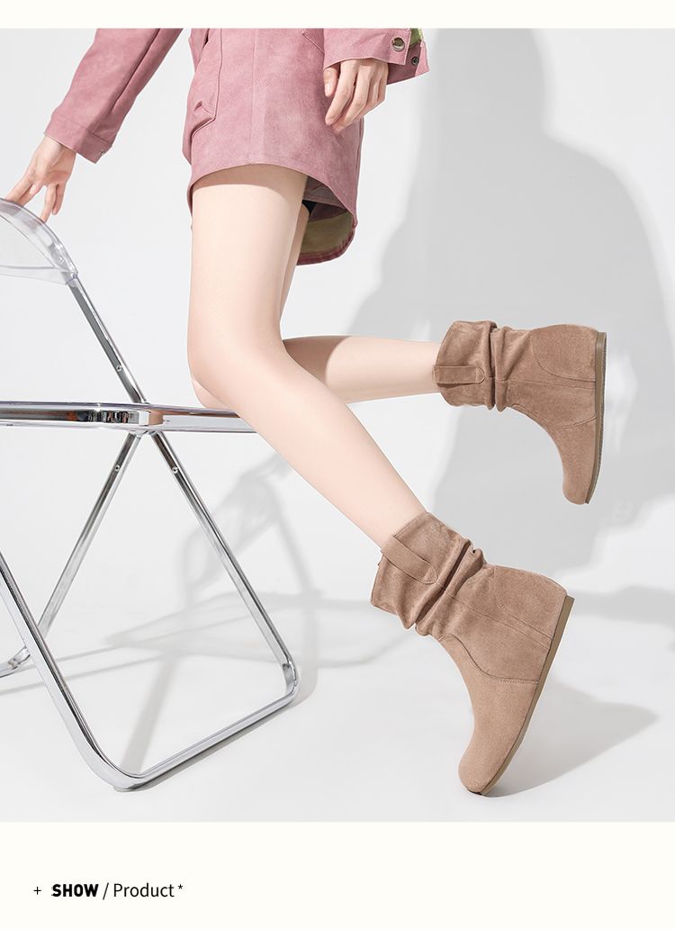 ZHR则则复古堆堆靴女2024新款内增高洋气小短靴加绒时尚绒面女靴