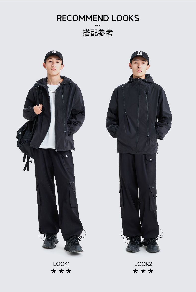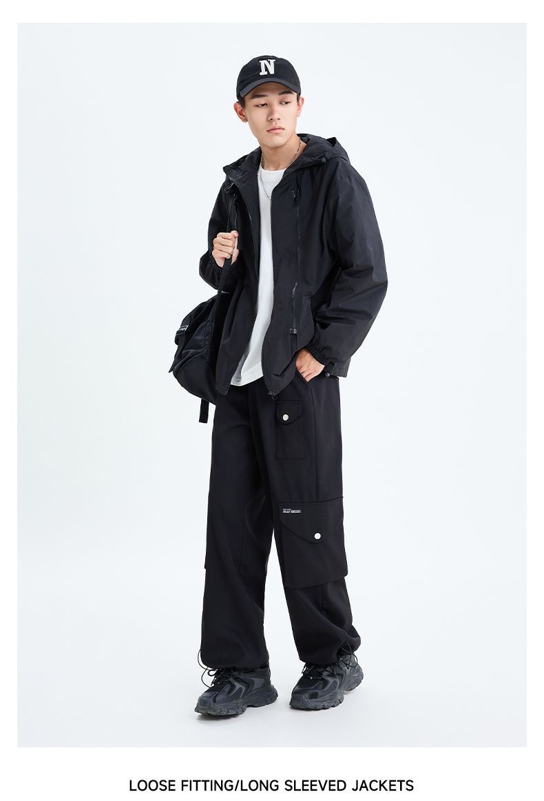 回力潮牌休闲男士外套春秋新款宽松美式机能风连帽夹克冲锋登山服
