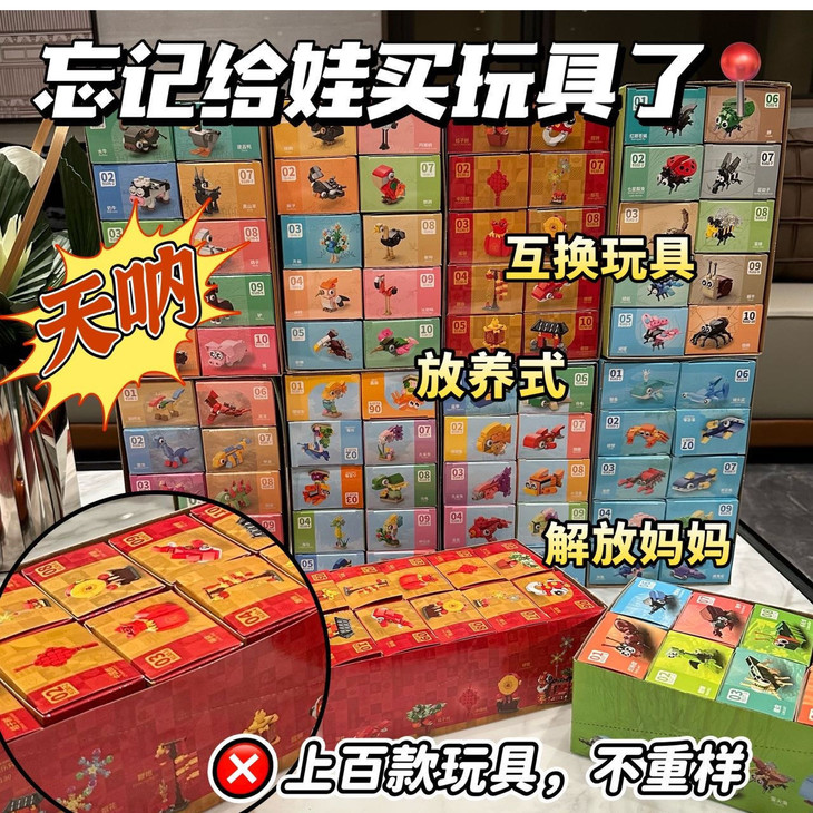 积木盲盒的主题很丰富 款款主题直戳孩子的心! ✅15盒随机发,不重样! 🔺熊猫,昆虫,机器人,火箭,坦克,恐龙,飞机、游艇、小房子等等……上千种款式随机发 ✅ 正品积木,全部3C认证,安全无忧 送朋友、送情侣、送小孩、送闺蜜、送兄弟或者自留收藏,都是很好的选择! 趁现在有活动,遇到喜欢🉑囤货 仓库搬迁清仓活动,低至骨折 不然错过可就啥也没有🈚