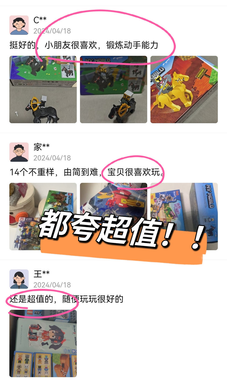 积木选用的都是ABS材质 安全无毒,切割工艺精细 无毛刺,不用担心伤到小朋友 你就说吧,质量这么高,是不是血赚!