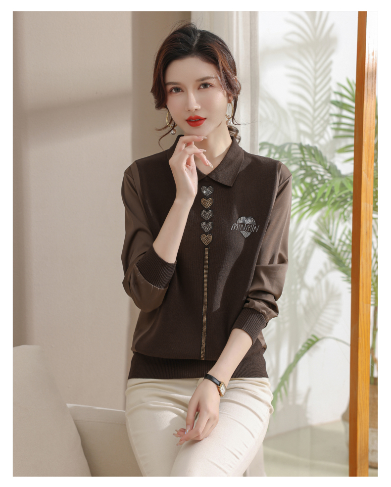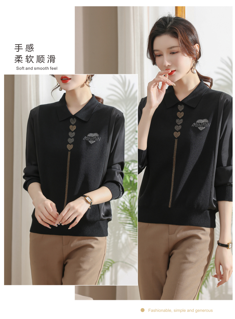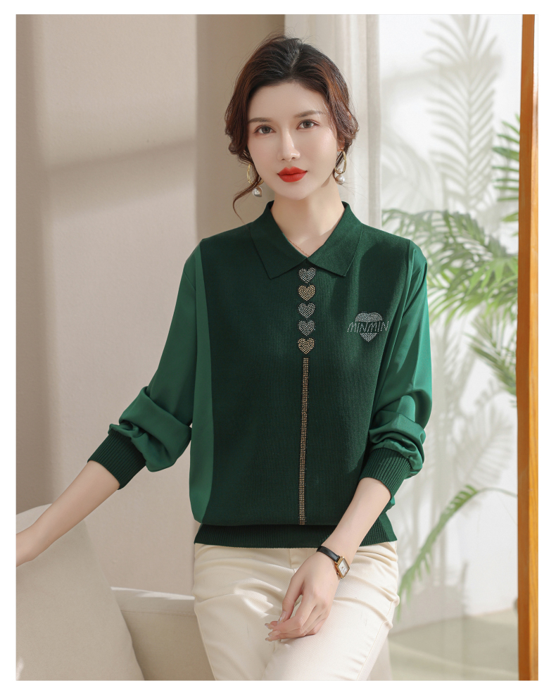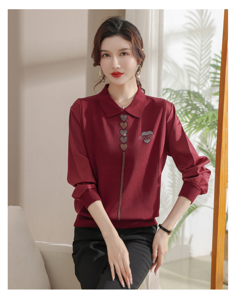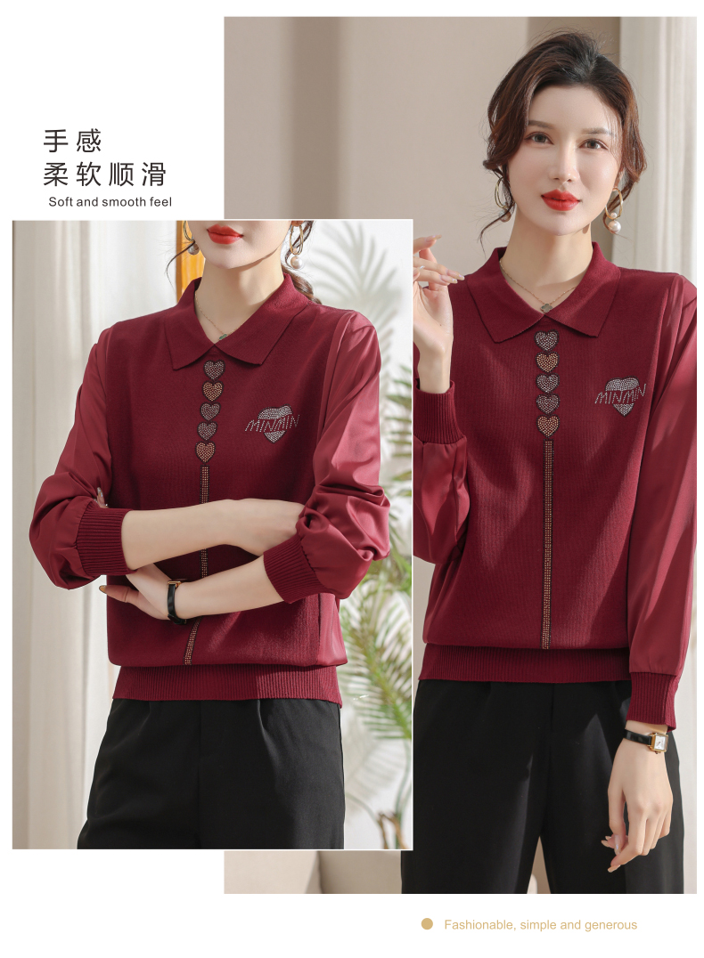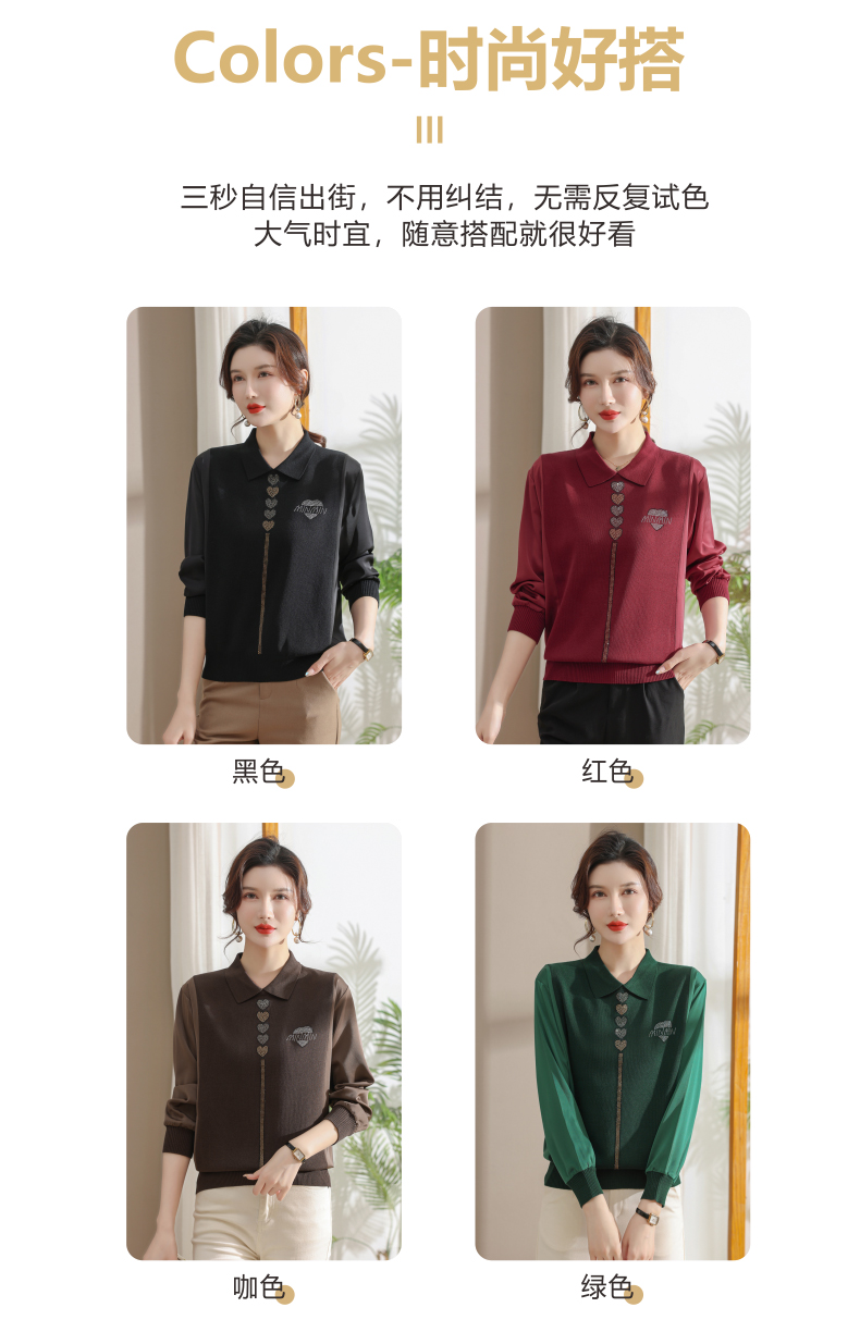妈妈翻领打底衫,针织假两件上衣小衫薄CC-80-2830