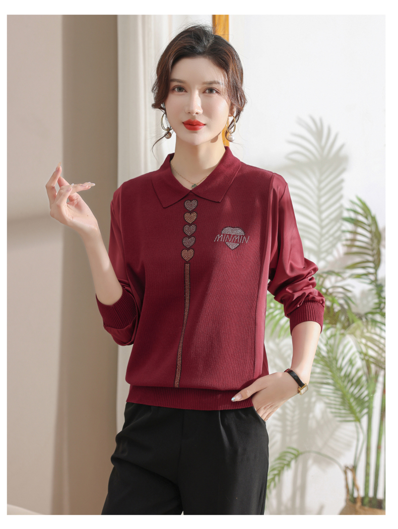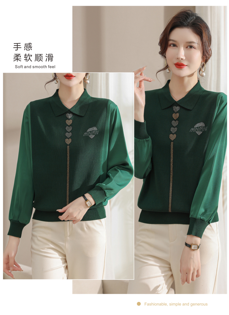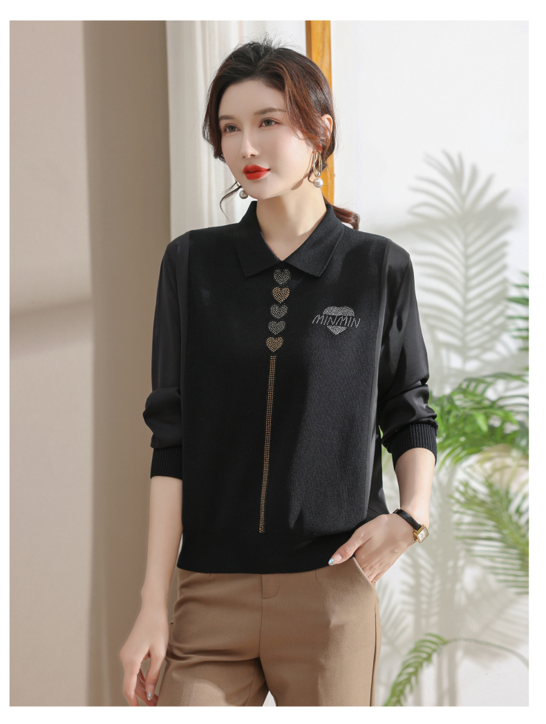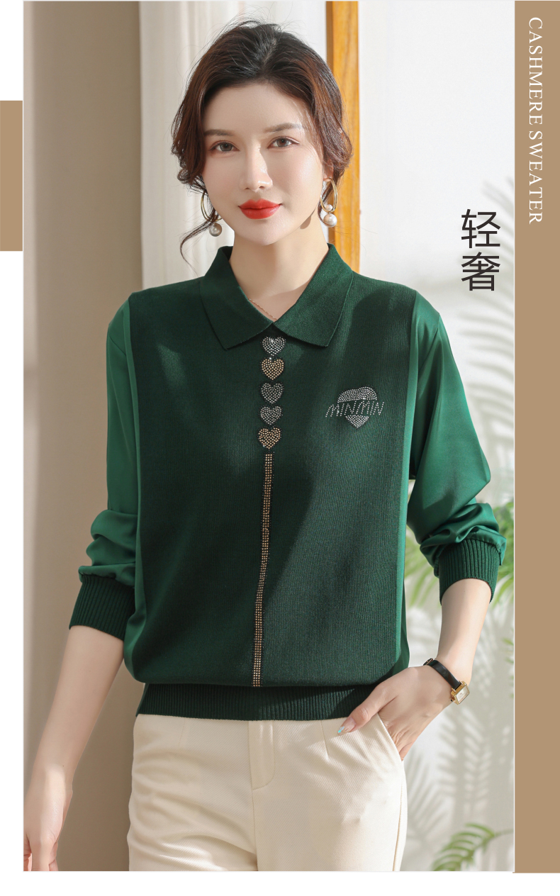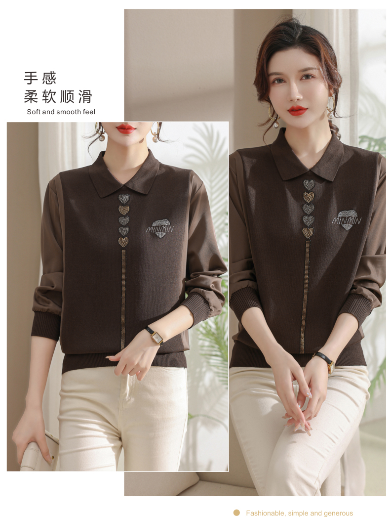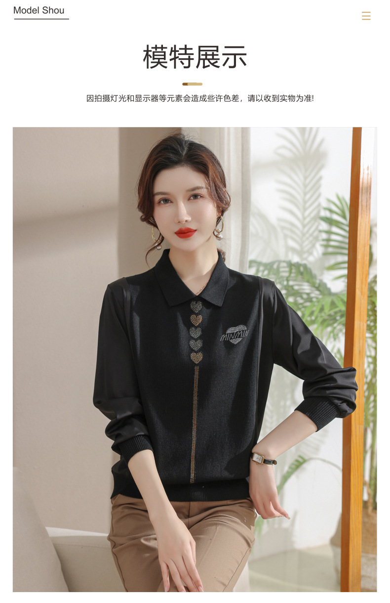 妈妈翻领打底衫,针织假两件上衣小衫薄CC-80-2830