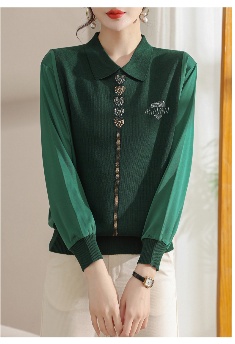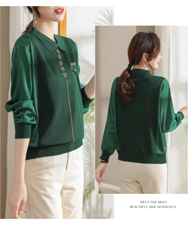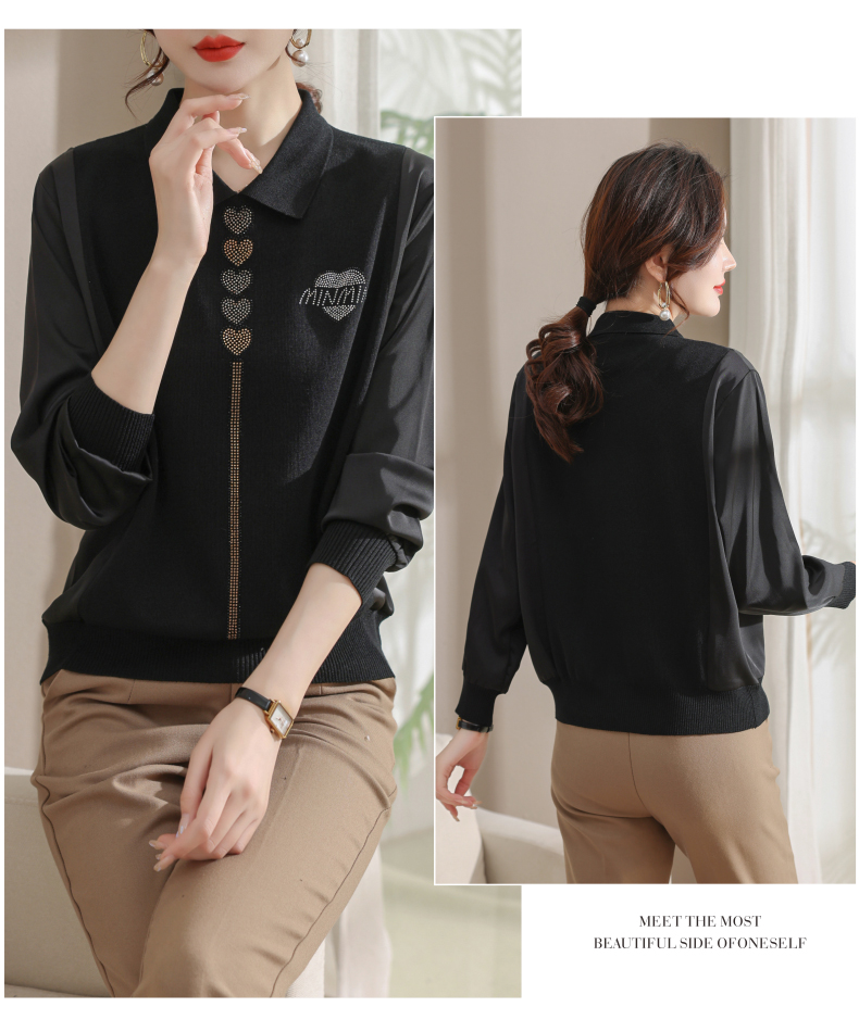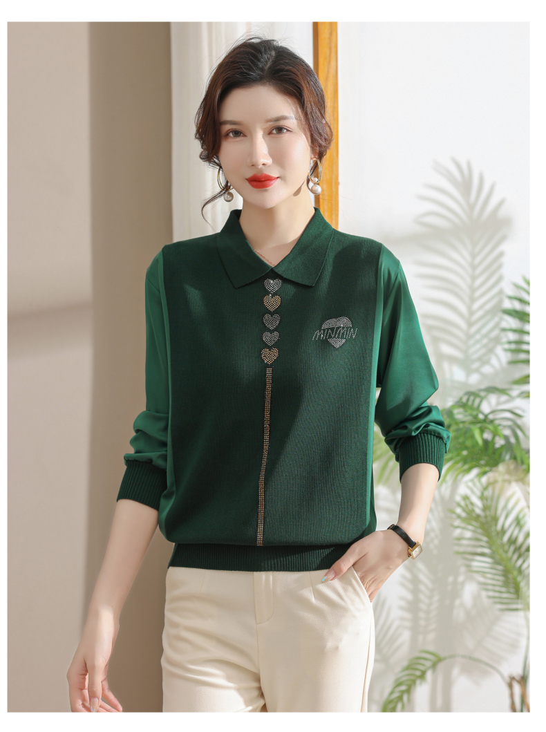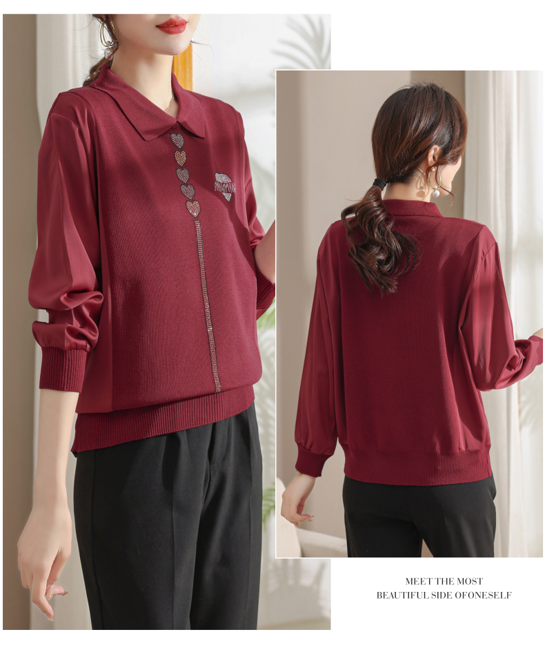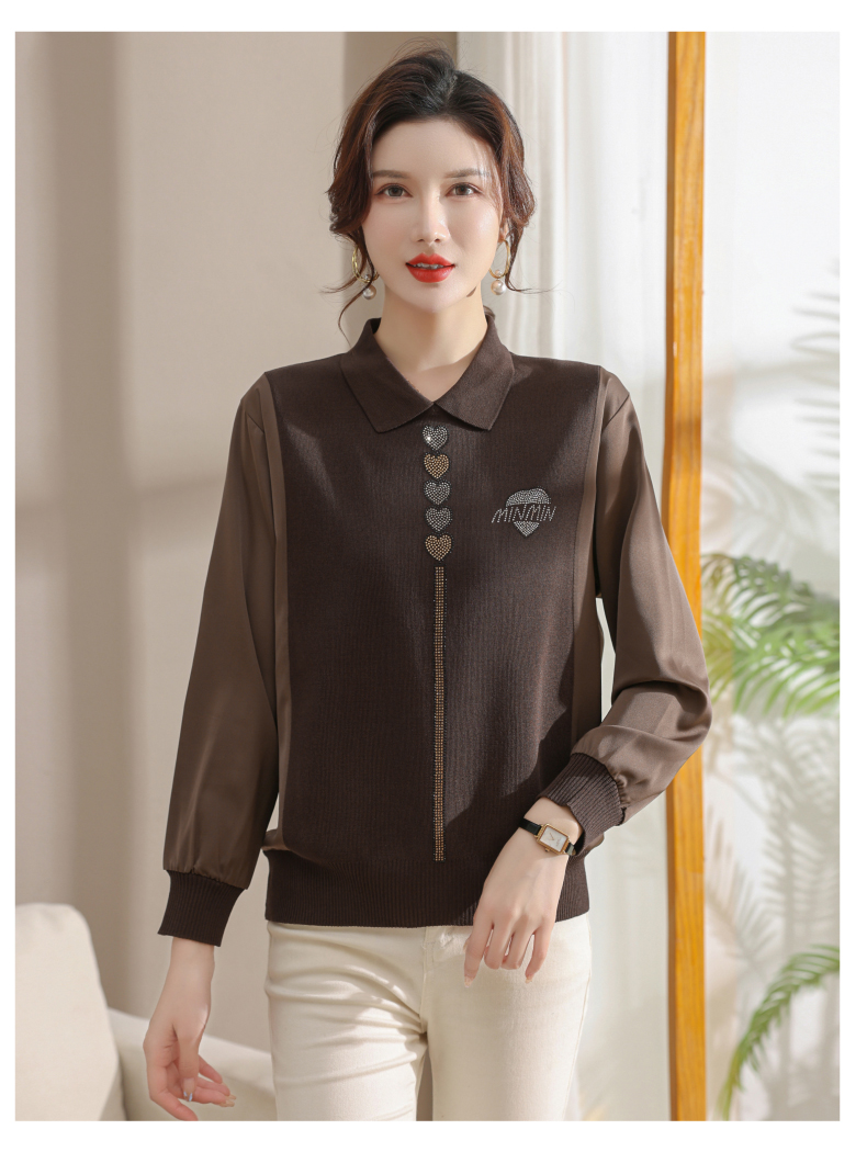 妈妈翻领打底衫,针织假两件上衣小衫薄CC-80-2830