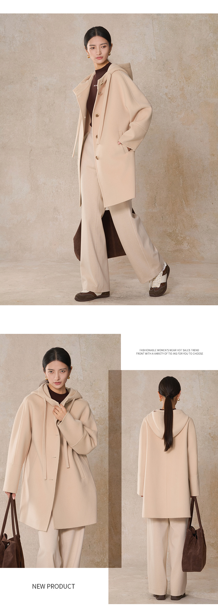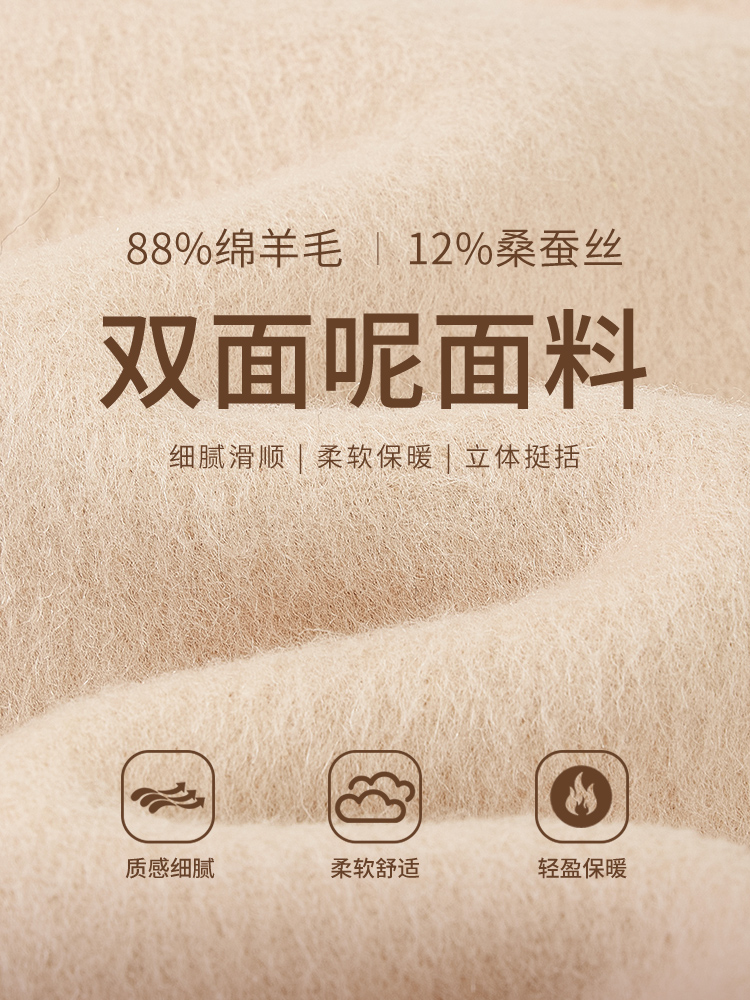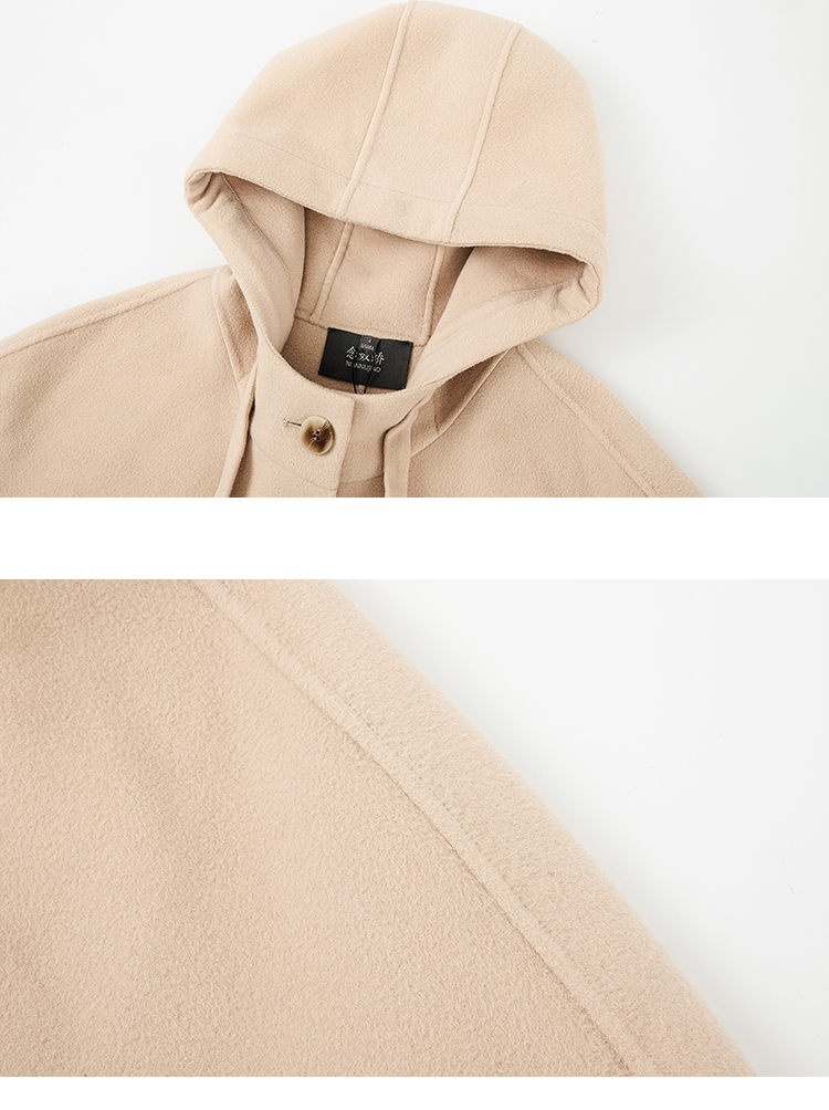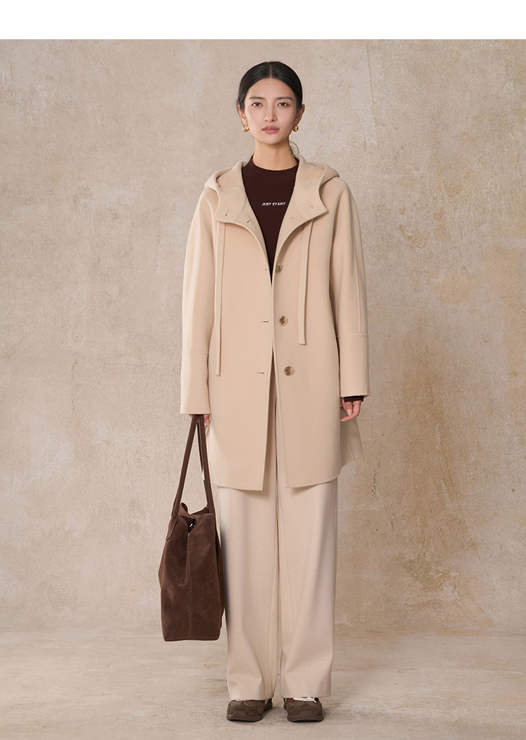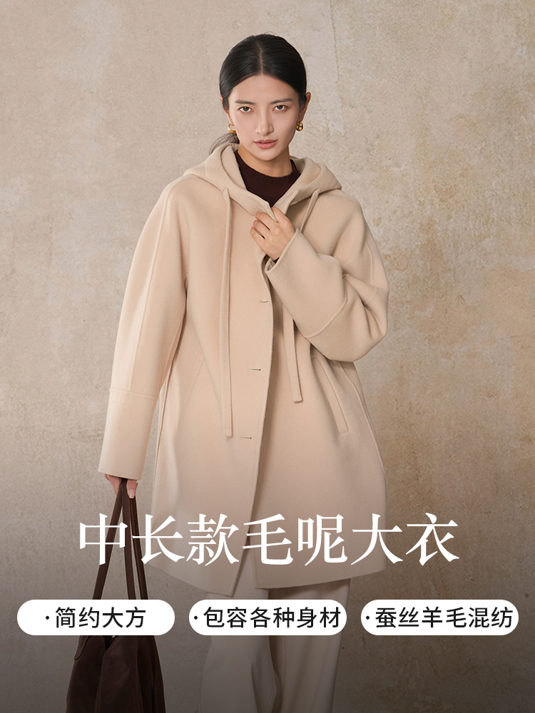 【商场同款】CNC5013 “ 随性大衣 ” 羊毛蚕丝混纺触感细腻高级 休闲连帽中长大衣