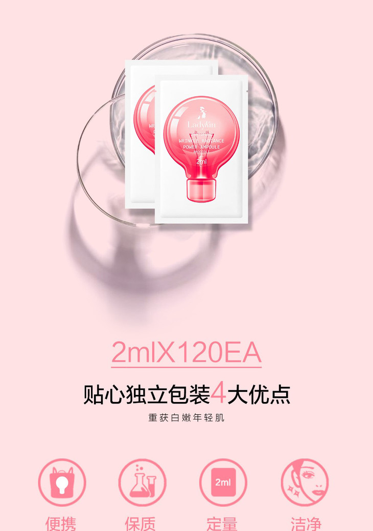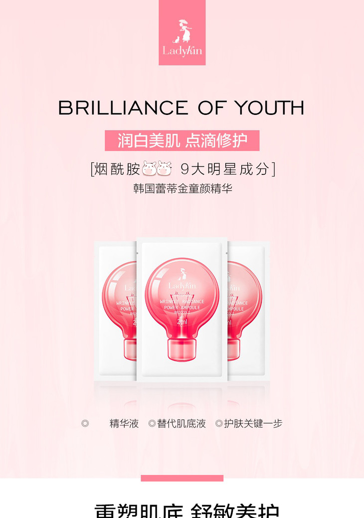 【现货】韩国ladykin蕾蒂金小灯泡童颜精华液女补水面部精华120片、30片装