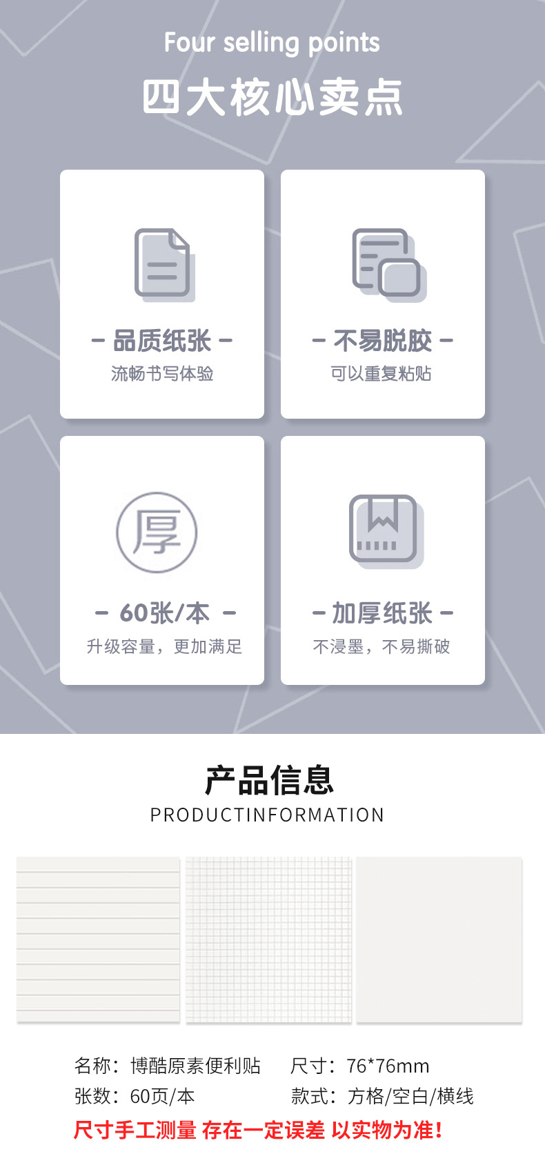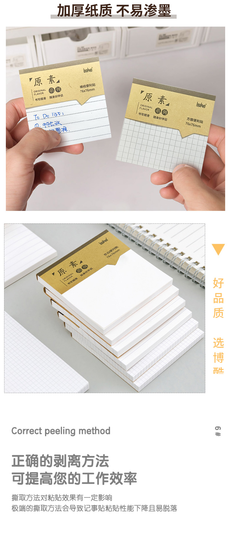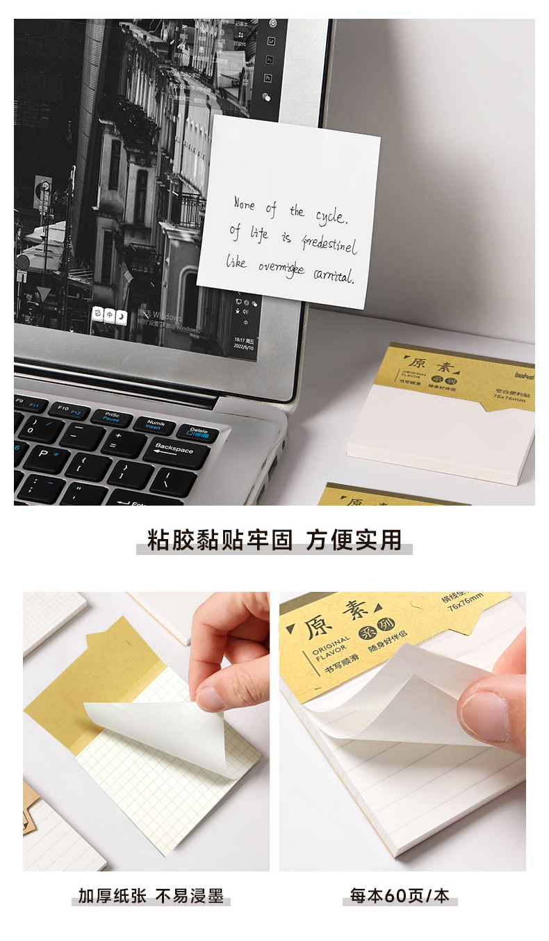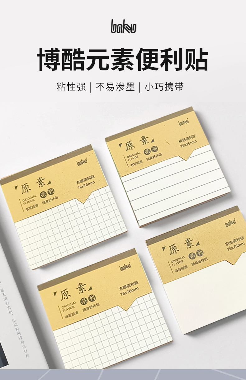 博酷原素便利贴学生办公通用高颜值便签贴纸ins有粘性可粘贴标记贴全粘式优事贴粘性强便签本