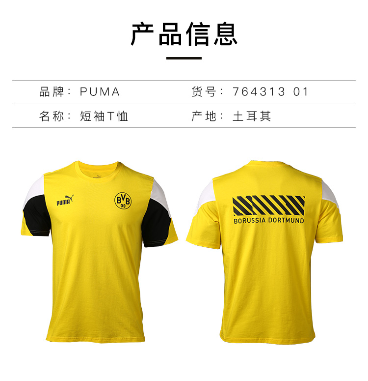 正品PUMA/彪马多特蒙德球迷运动休闲训练短袖T恤764313-01