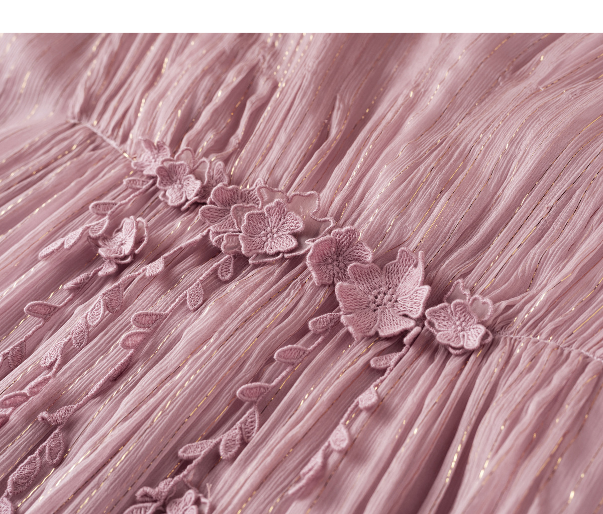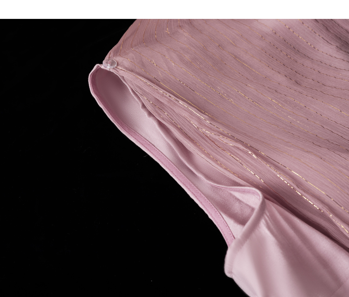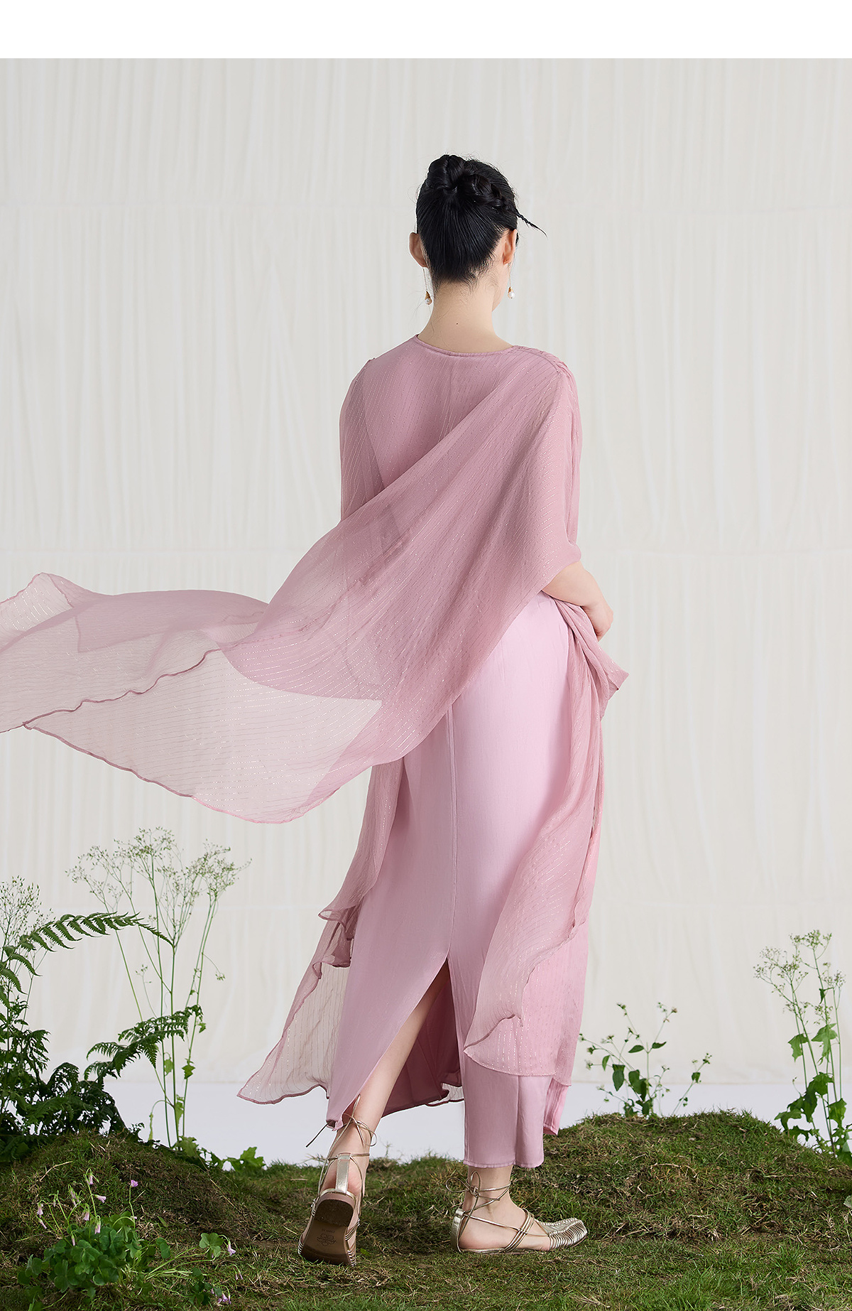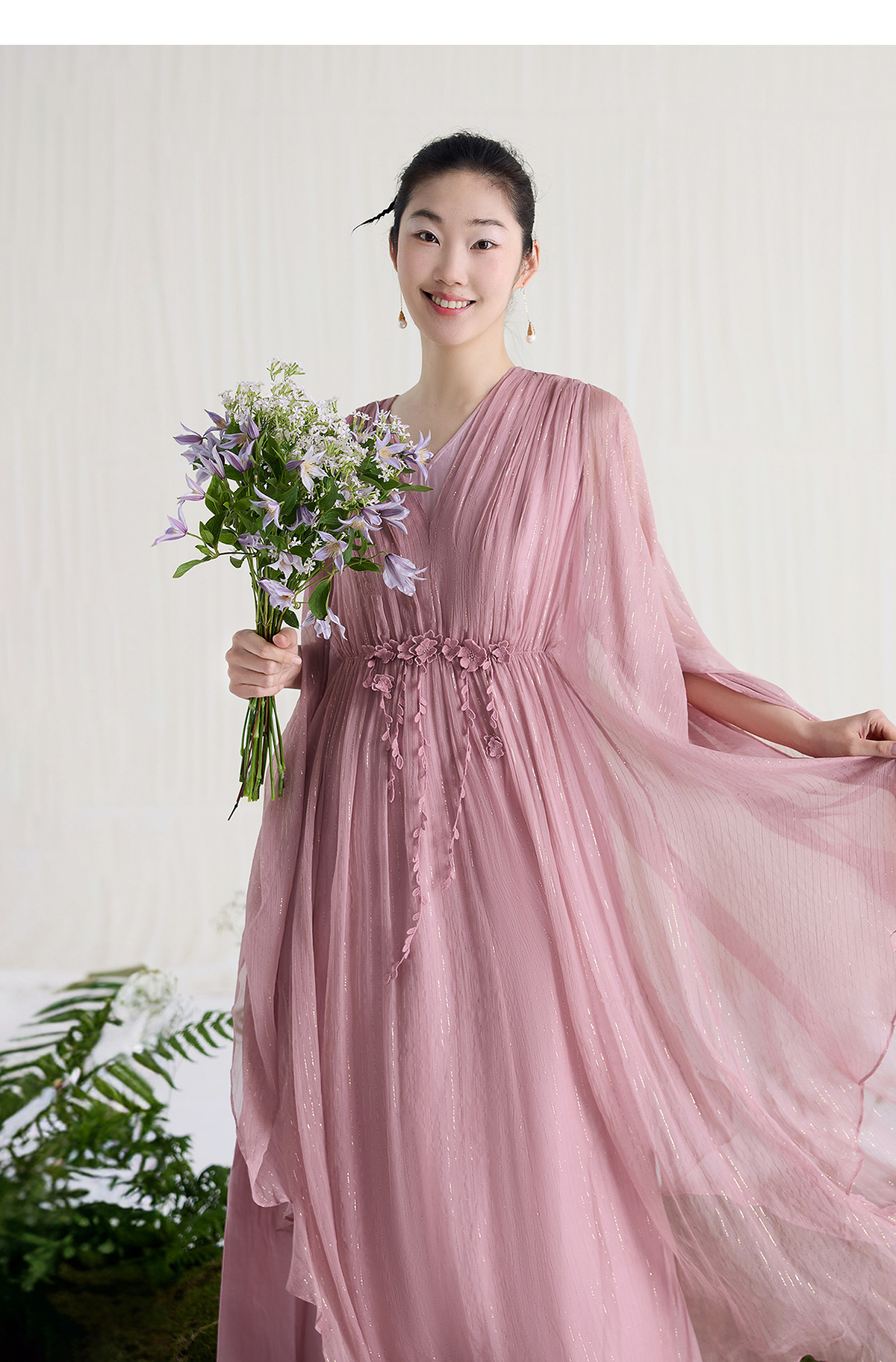 【林栖设计小店】【现货】粉色连衣裙桑蚕丝混纺金丝复古宽松2025春夏新品长裙女1933250B