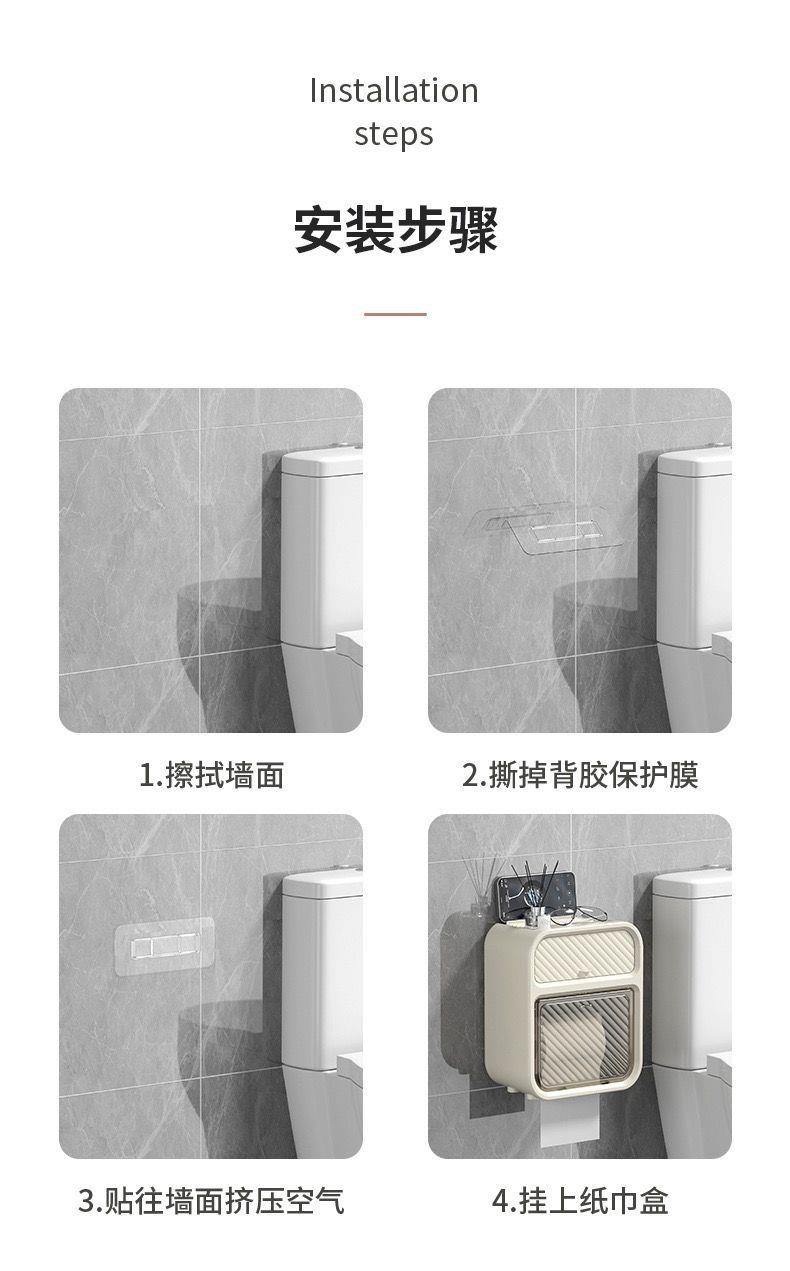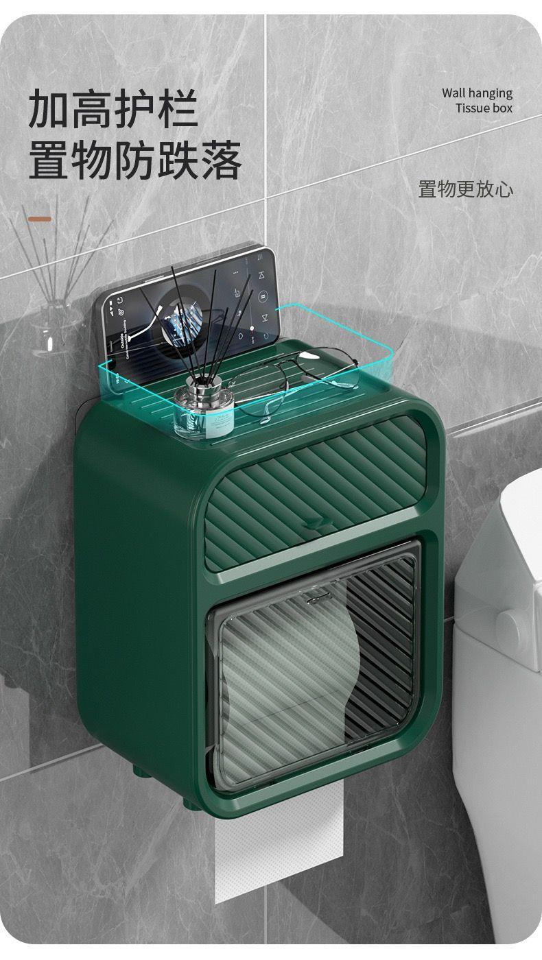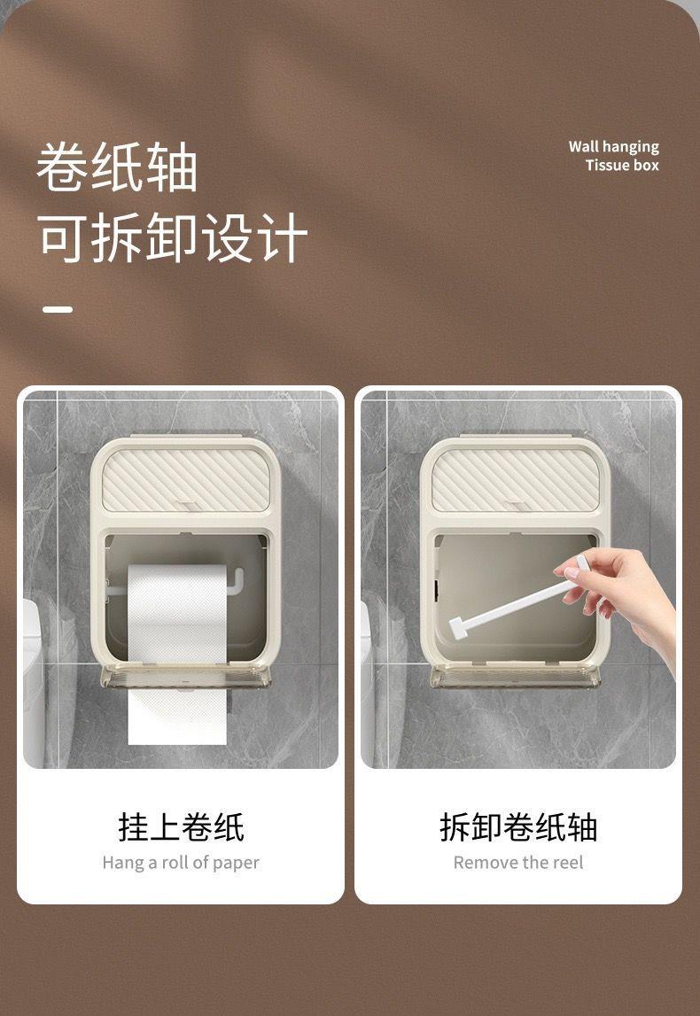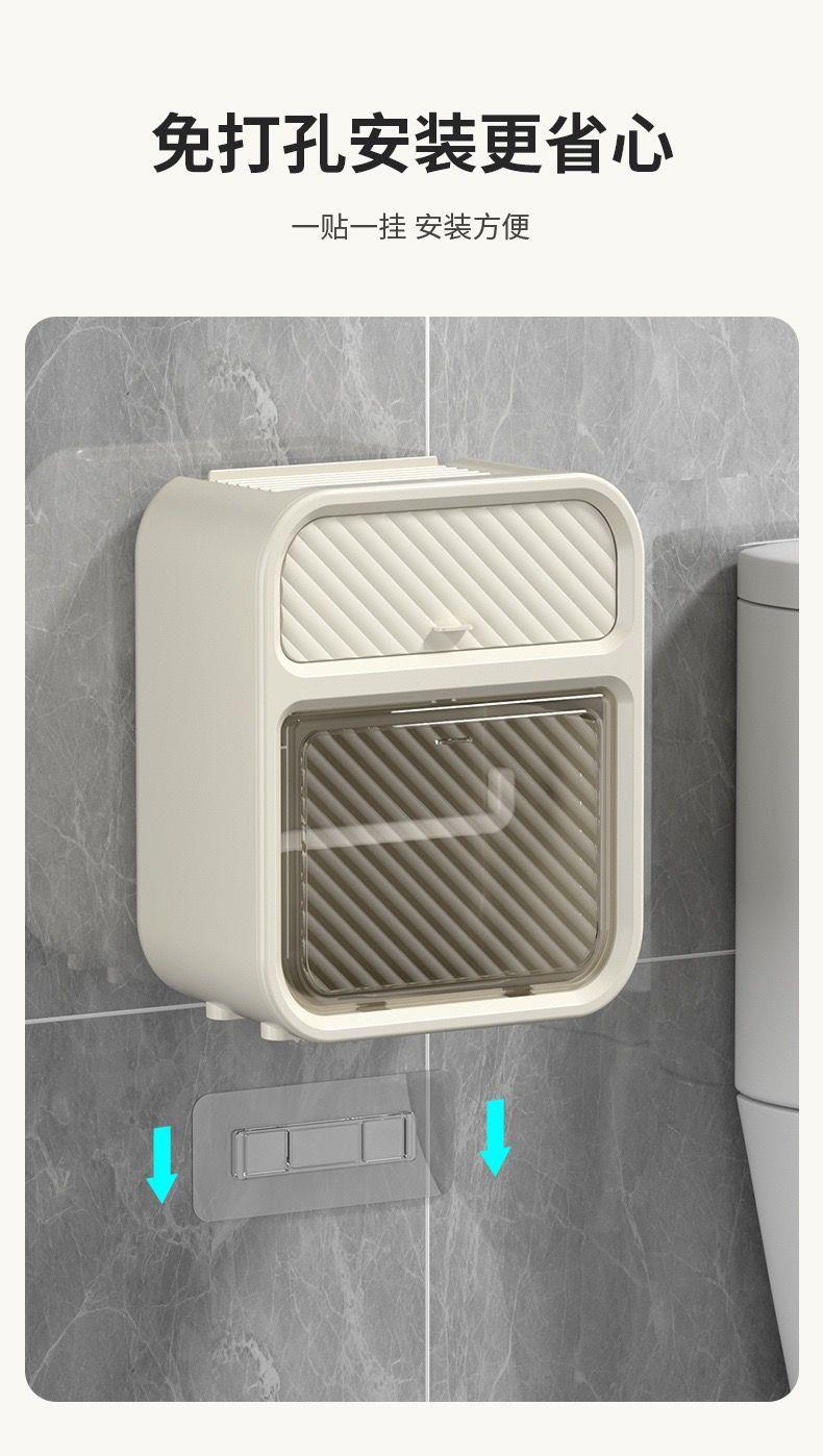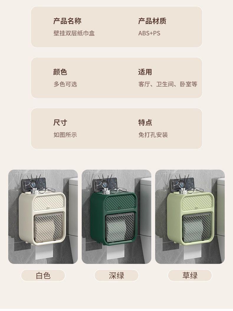 奶油风卫生间纸巾盒轻奢浴室免打孔双层置物架壁挂式卷纸抽纸盒