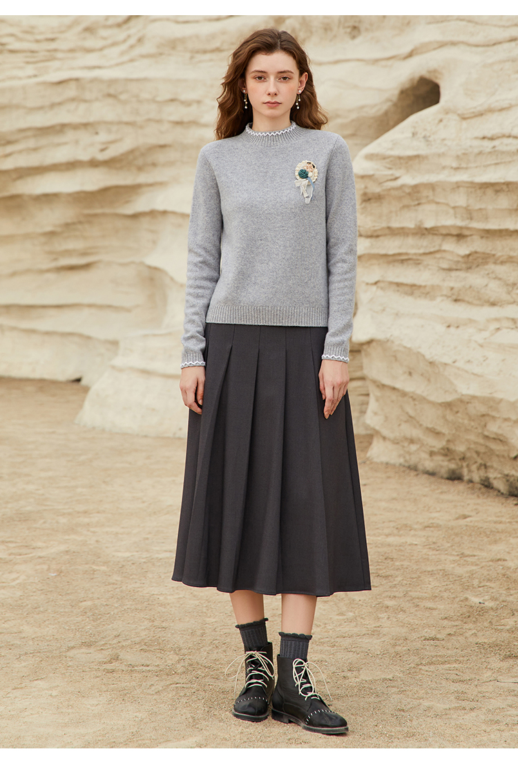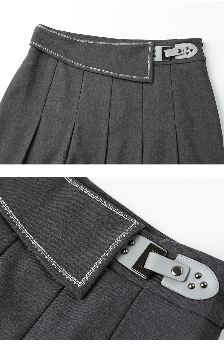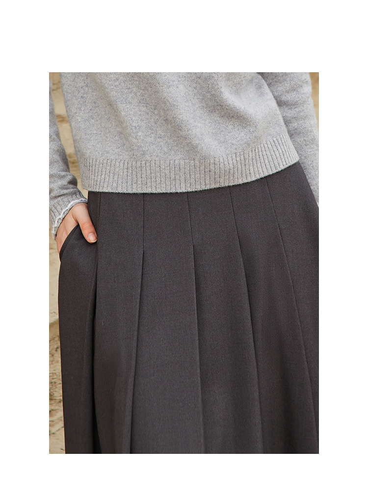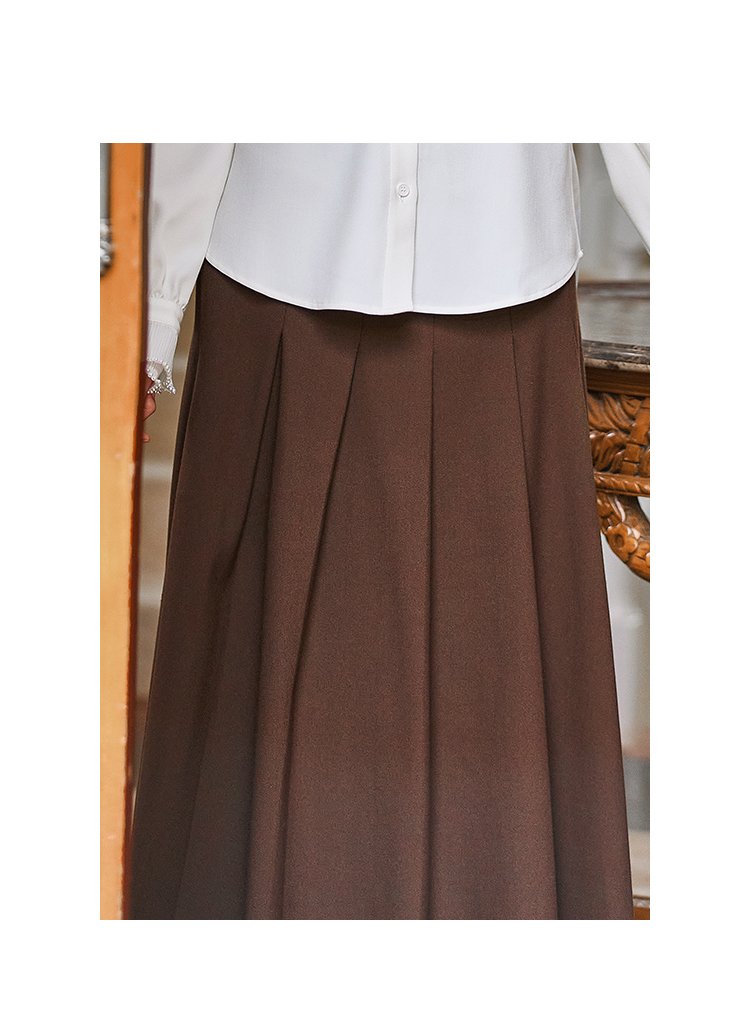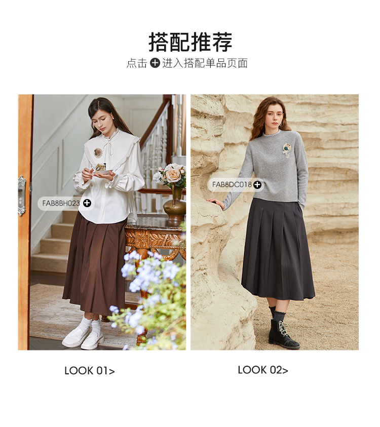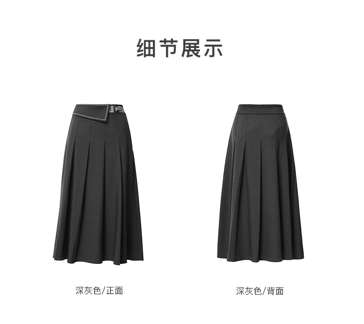 Famecoco范可儿垂感百褶裙西装半裙女秋冬FAB8HA021