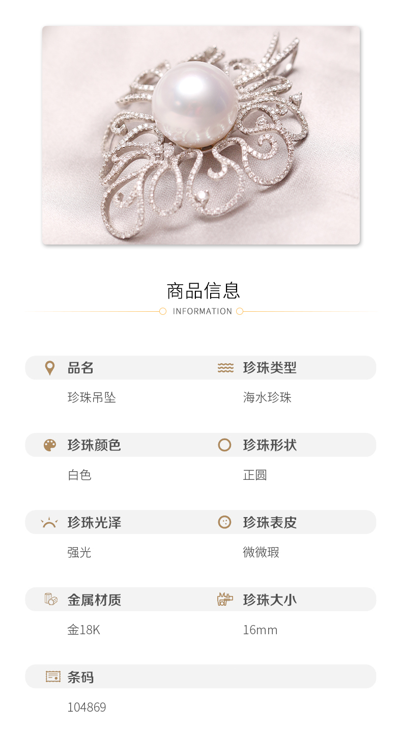 炫彩海南 金18K海水珍珠吊坠 16mm 104869