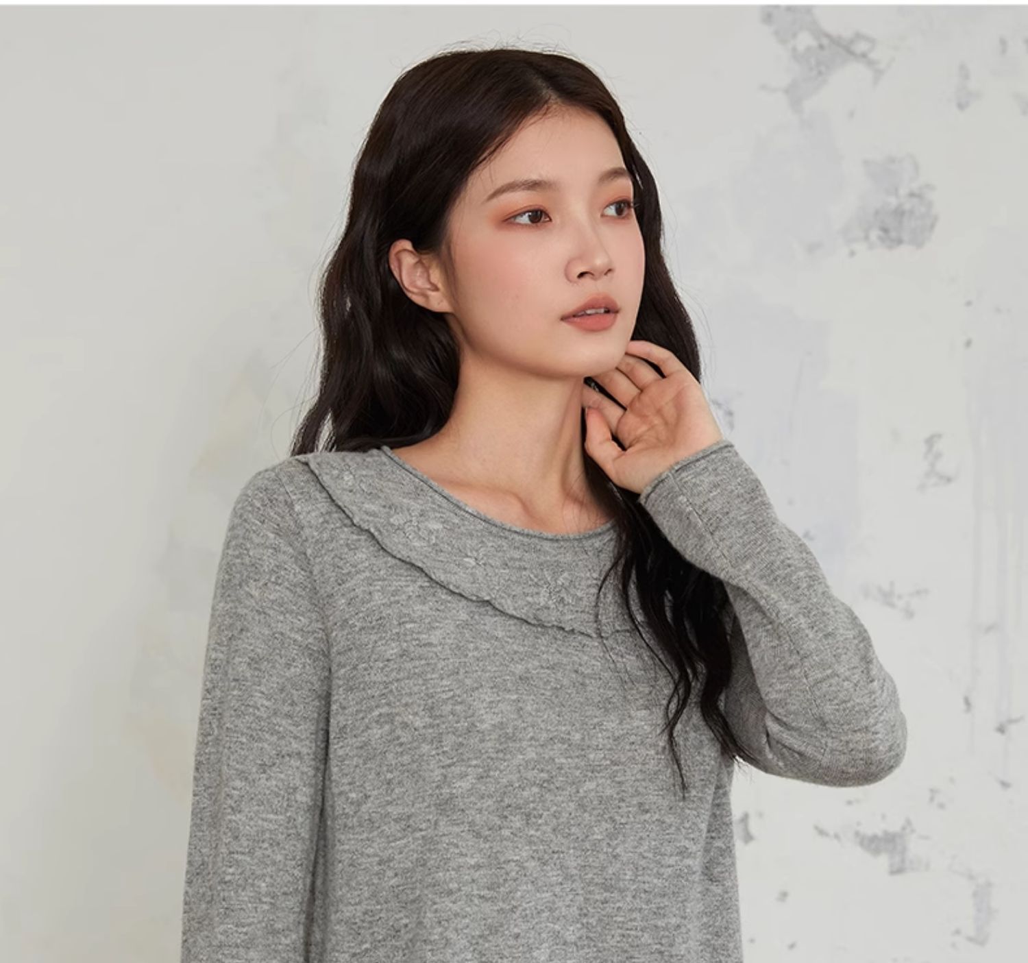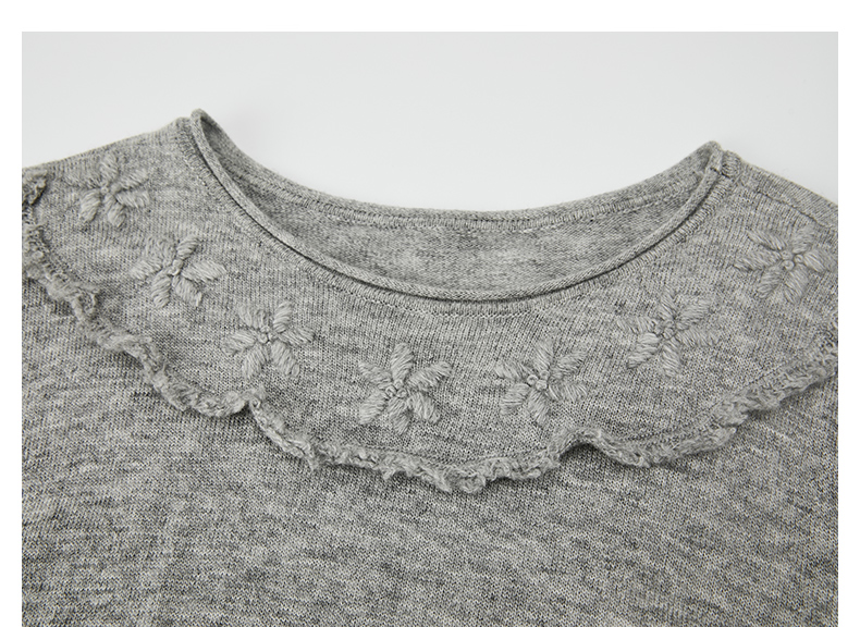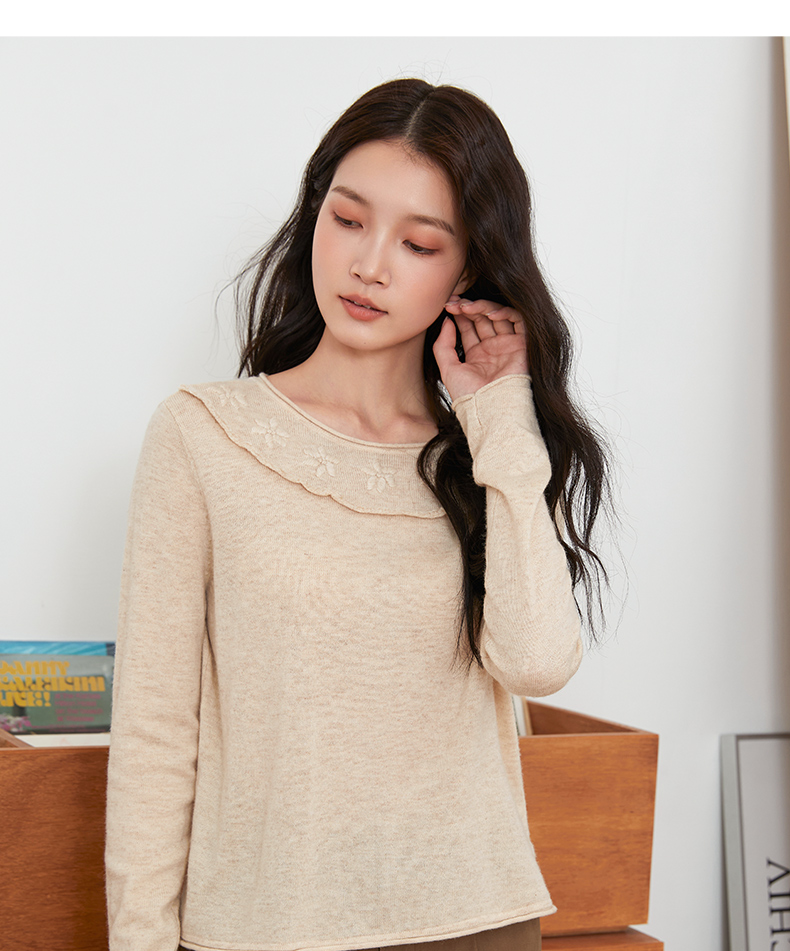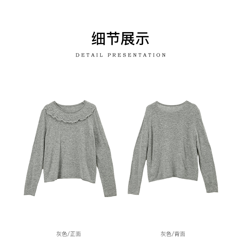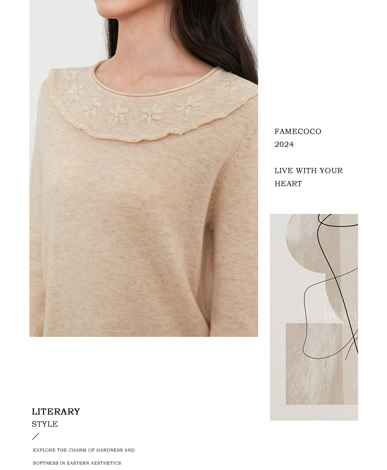 Famecoco范可儿针织衫简约套头圆领刺绣套头毛衫通勤女装春秋款FAB6DB009
