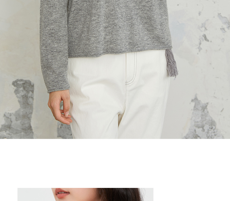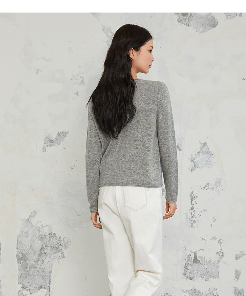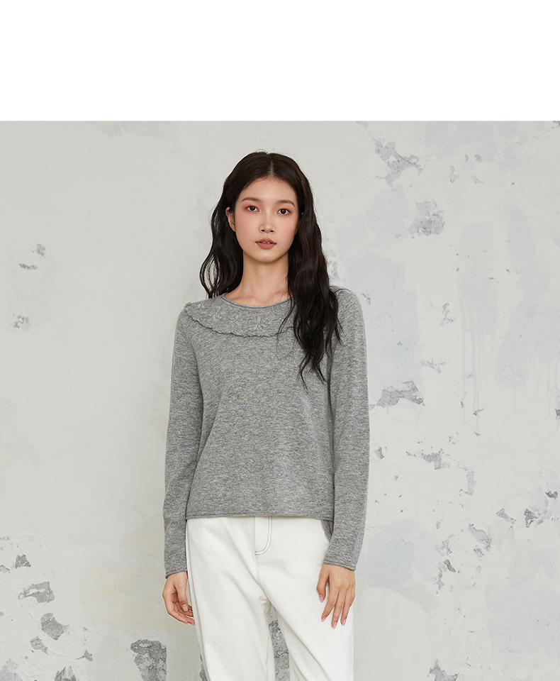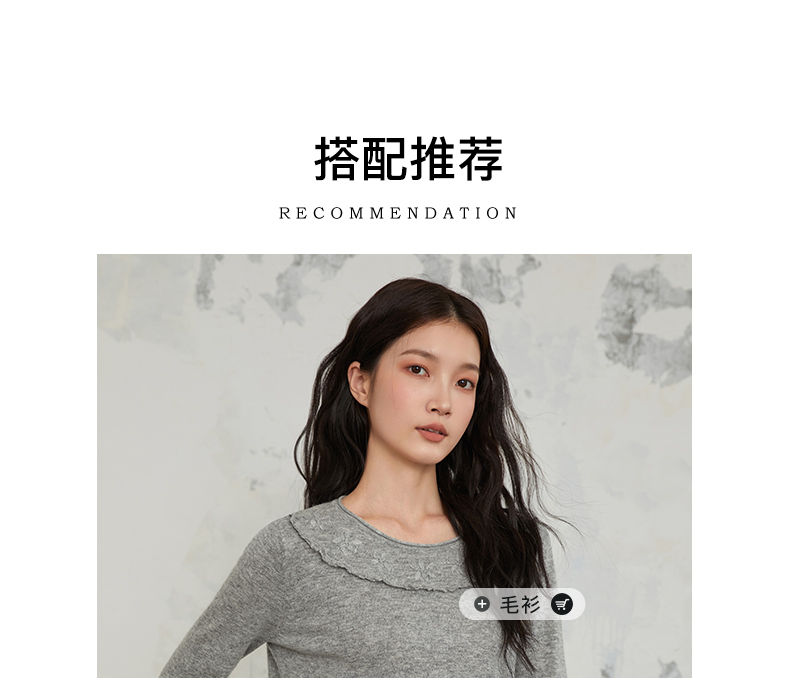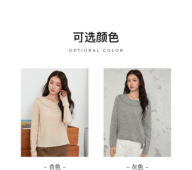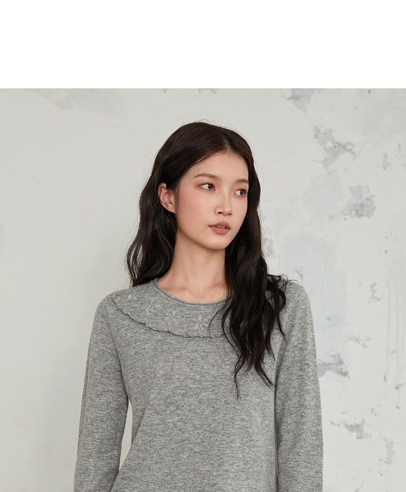 Famecoco范可儿针织衫简约套头圆领刺绣套头毛衫通勤女装春秋款FAB6DB009