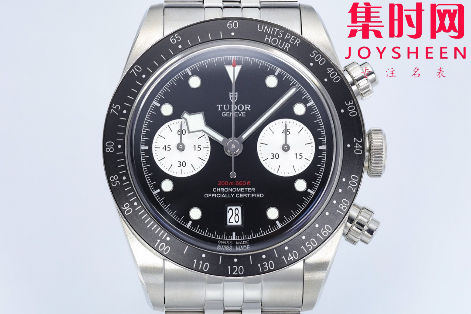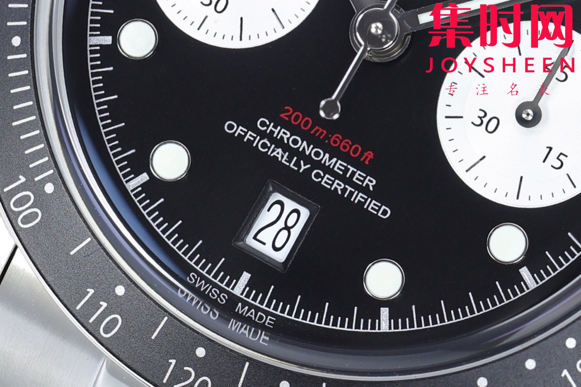 【表壳】正品1:1开模 表径41mm 采用316L精钢表壳,表面拉丝和抛光工艺交交替处理,抗划痕性强,质感十足。配备起高工艺的黑色阳极氧化铝测速计字外圈,旋入式表冠和密闭式底盖,赋予腕表200米防水。