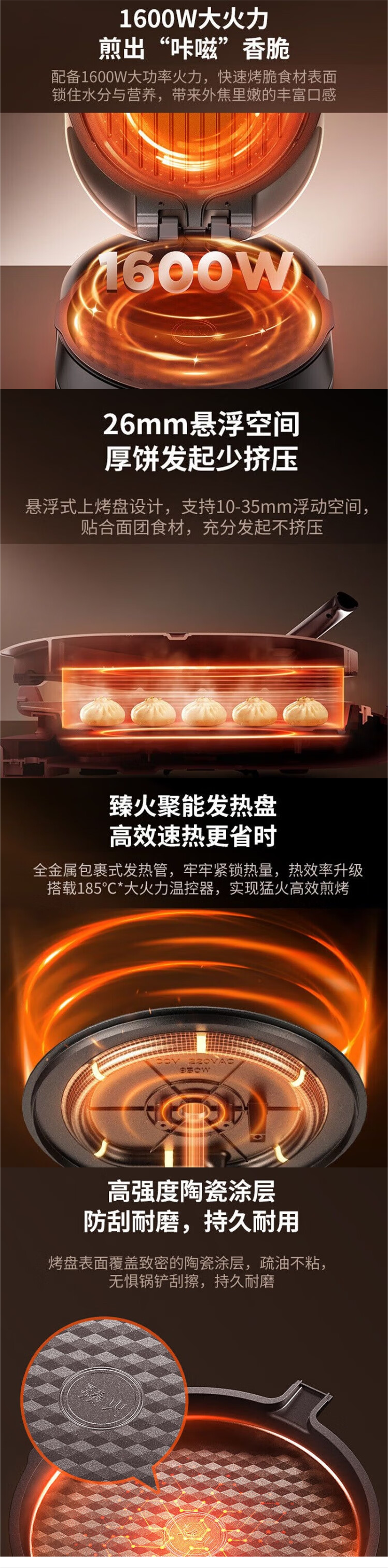 九阳(13229)(Joyoung)九阳电饼铛JK32-GK360家用多功能一体煎烤机双面悬浮下盘可拆32cm 九阳电饼铛JK32-GK360