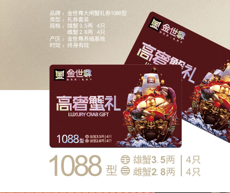 金世尊大闸蟹1088型 雄蟹3.5两 4只/雌蟹2.8两 4只【LY】【包邮直发】