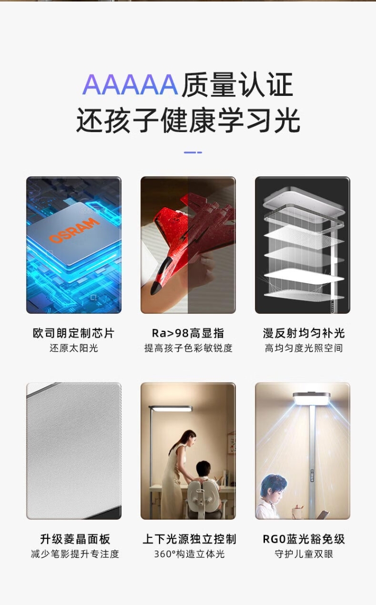 欧司朗立式护眼灯儿童学习专用读写落地灯台灯全光谱钢琴大路灯
