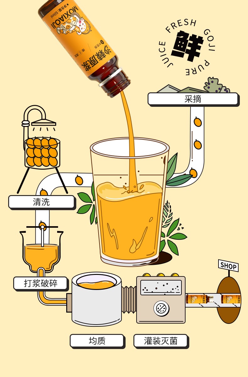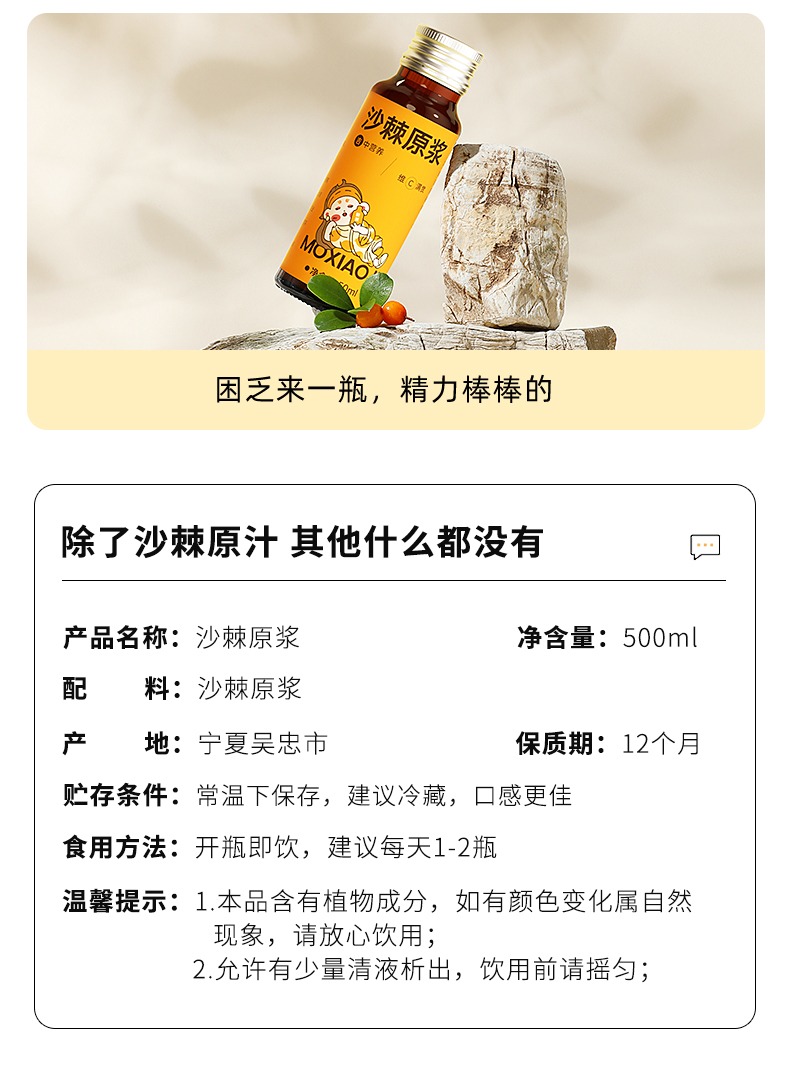 【推荐】默小吉沙棘原浆500ml(50ml*10瓶)
