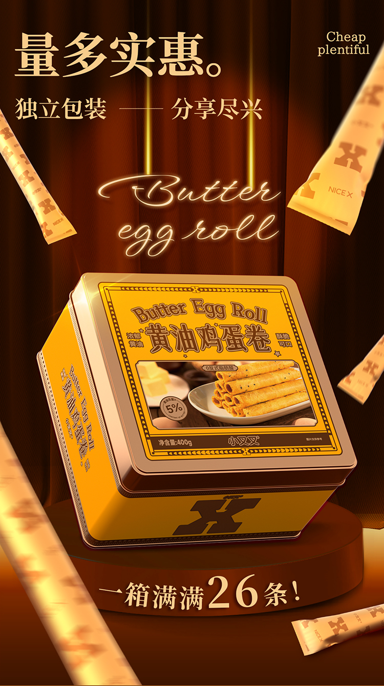 一只小叉叉黄油鸡蛋卷铁盒板