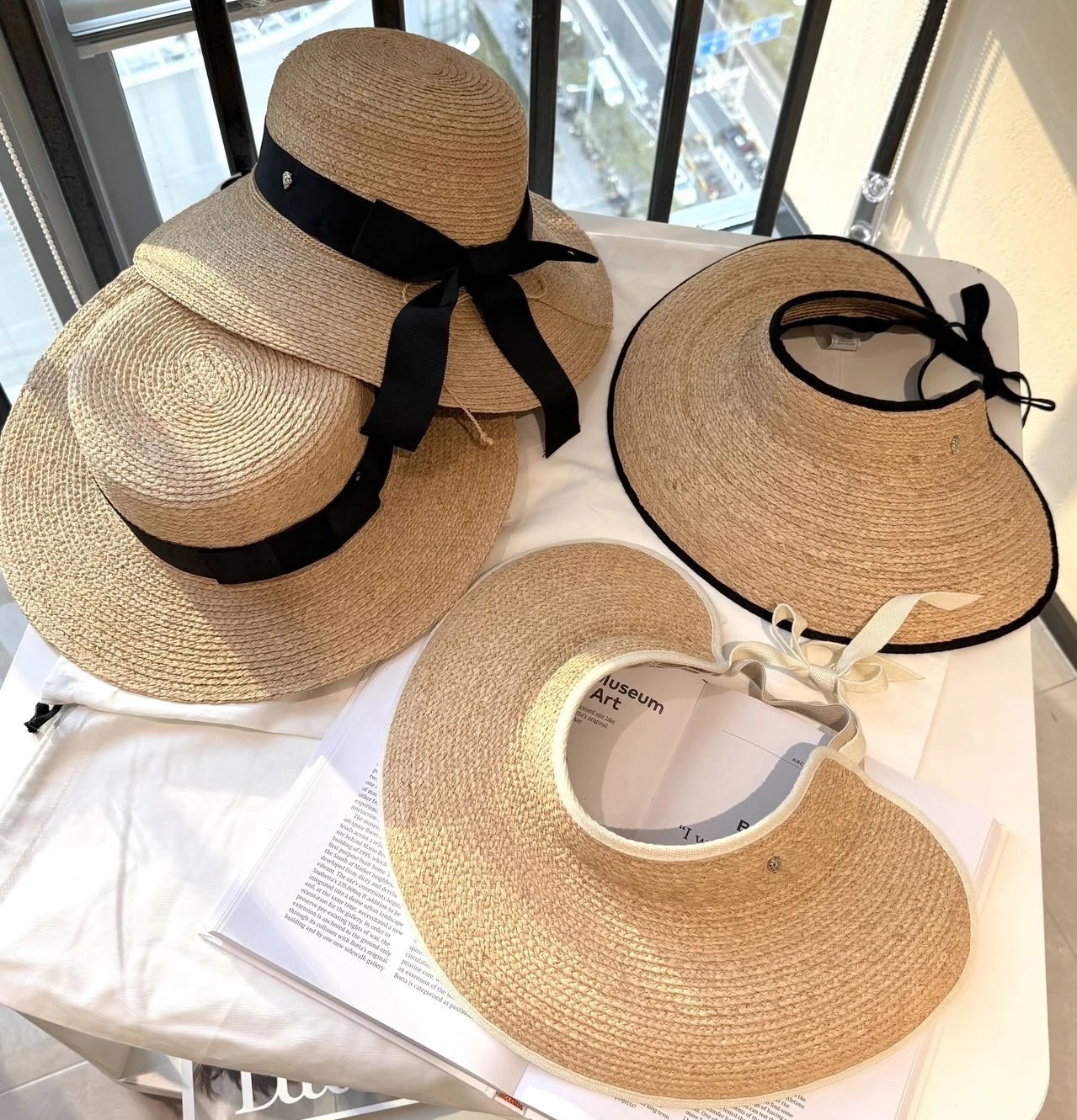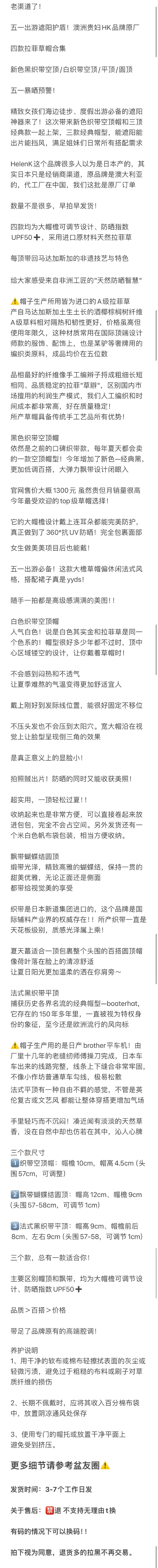 出游遮阳护盾!澳洲贵妇HK草帽 原厂四款拉菲草帽合集 新色黑织带空顶/白织带空顶/平顶/圆顶