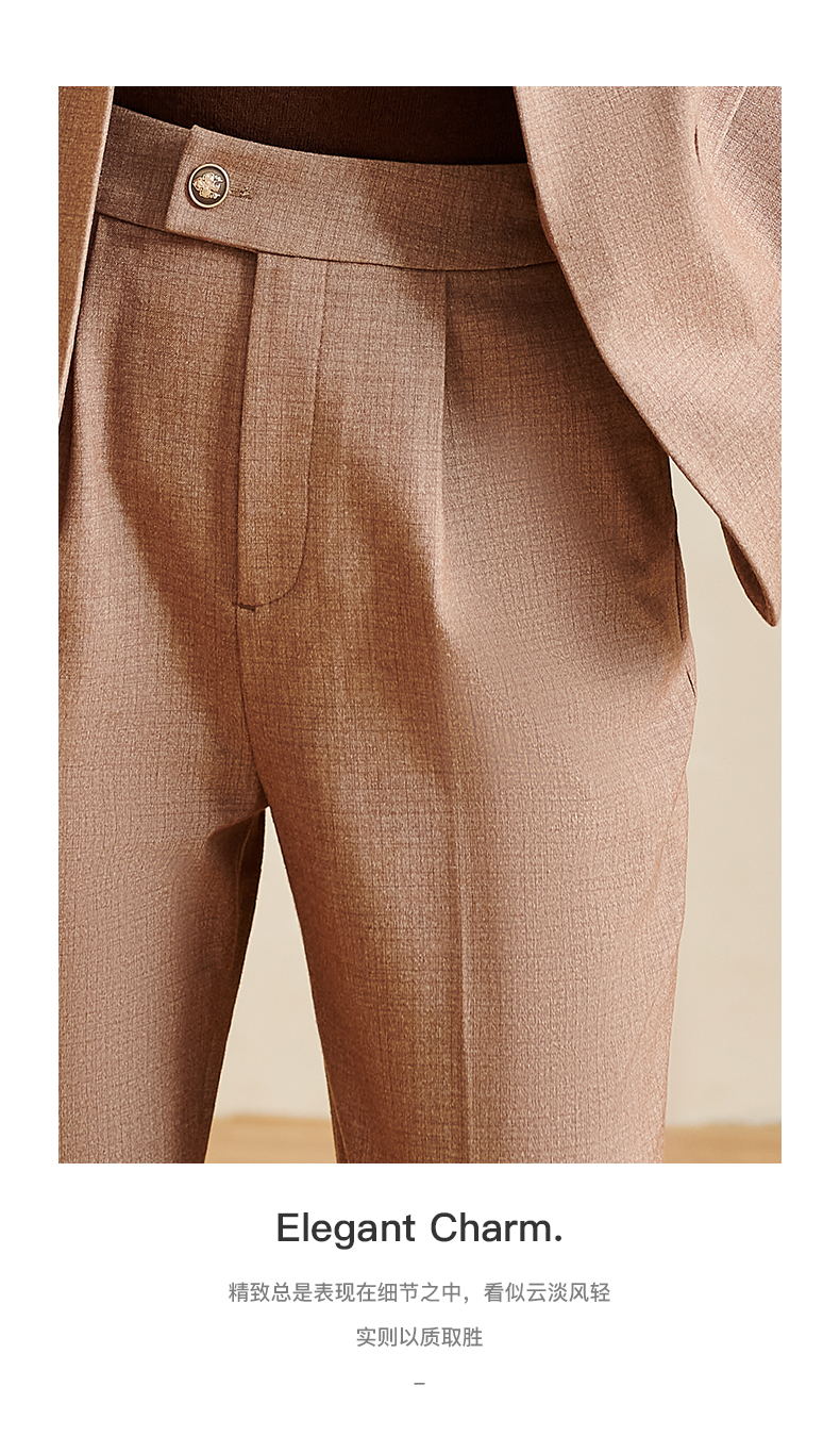 剩S 米思阳2026春季新款轻奢通勤休闲裤肌理感高腰修身卡其色裤子2735