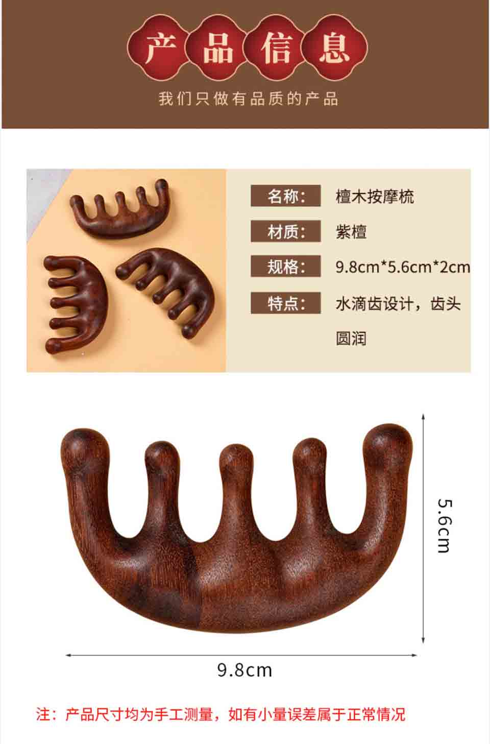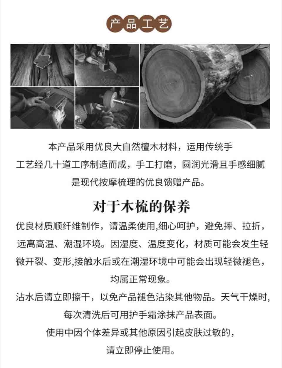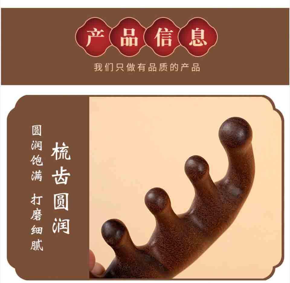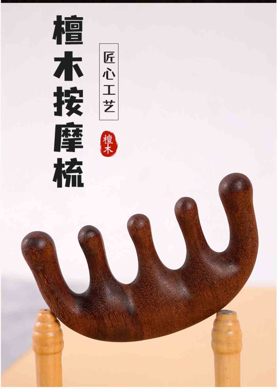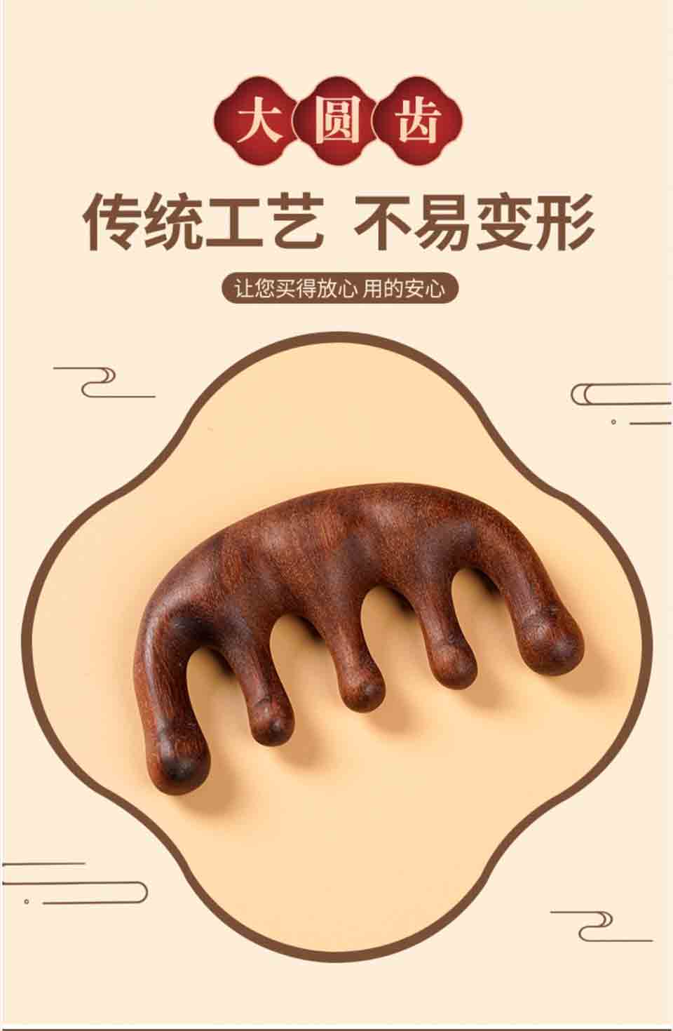 檀木按摩梳经络梳实木梳 传统工艺 不易变形 梳齿圆润 厚实质感