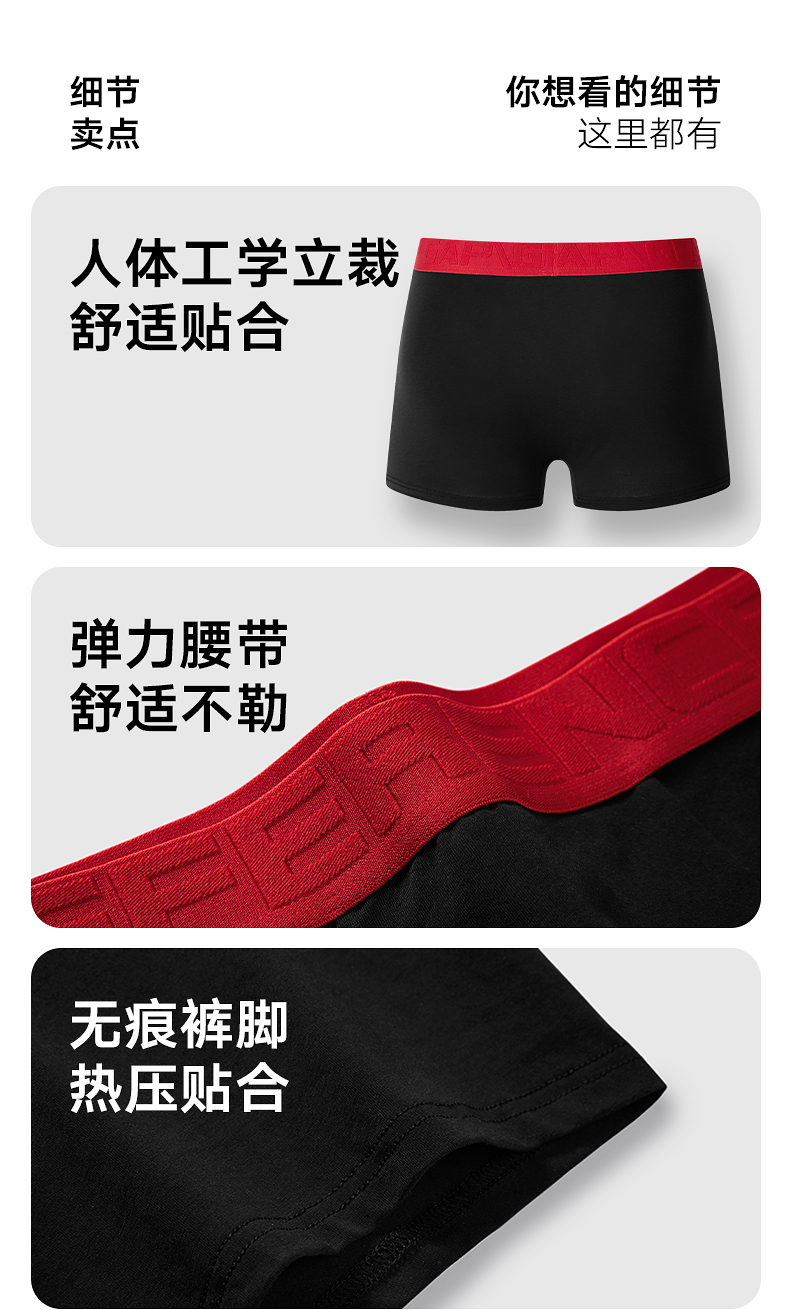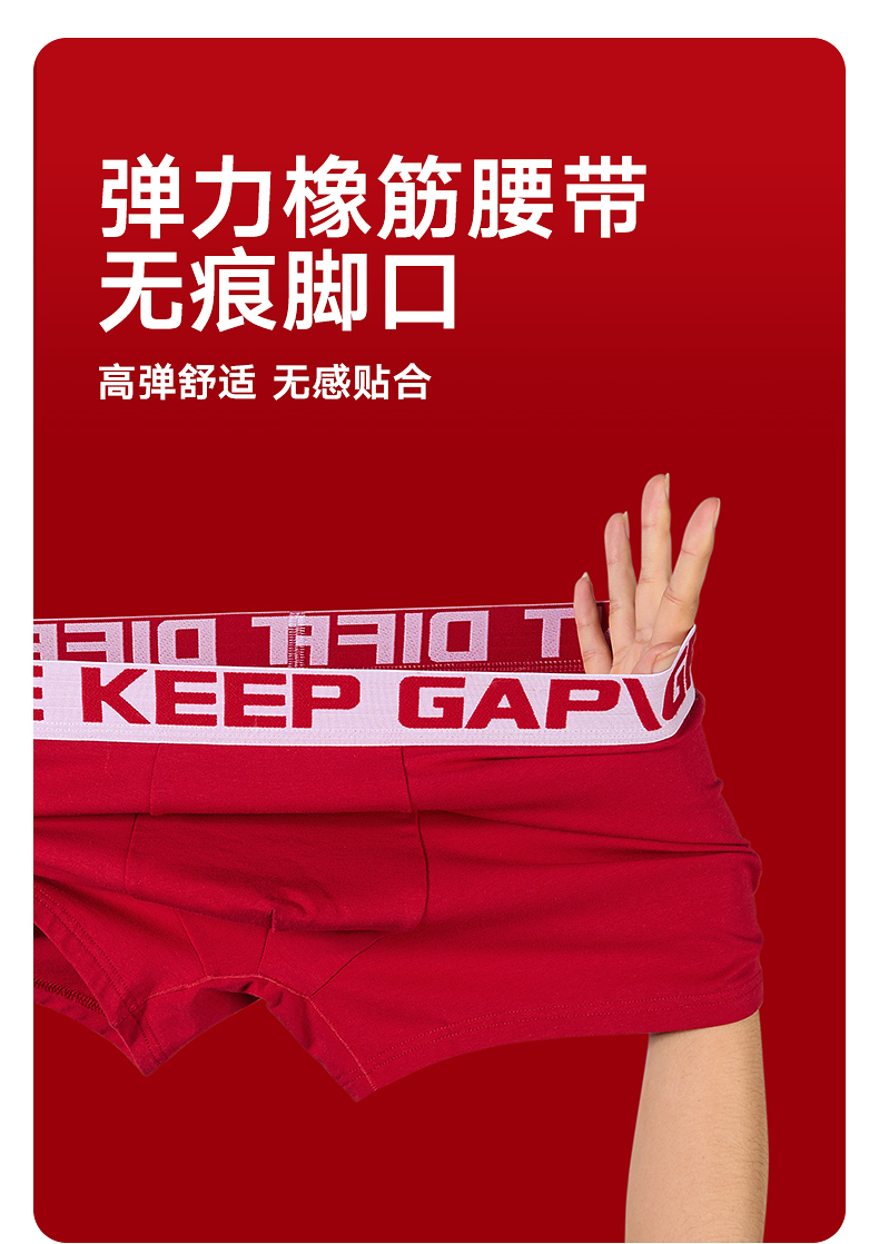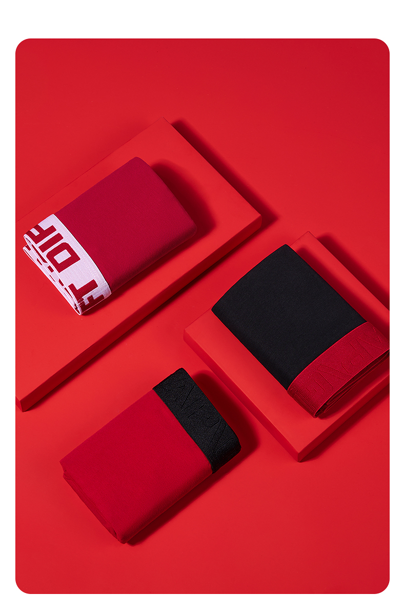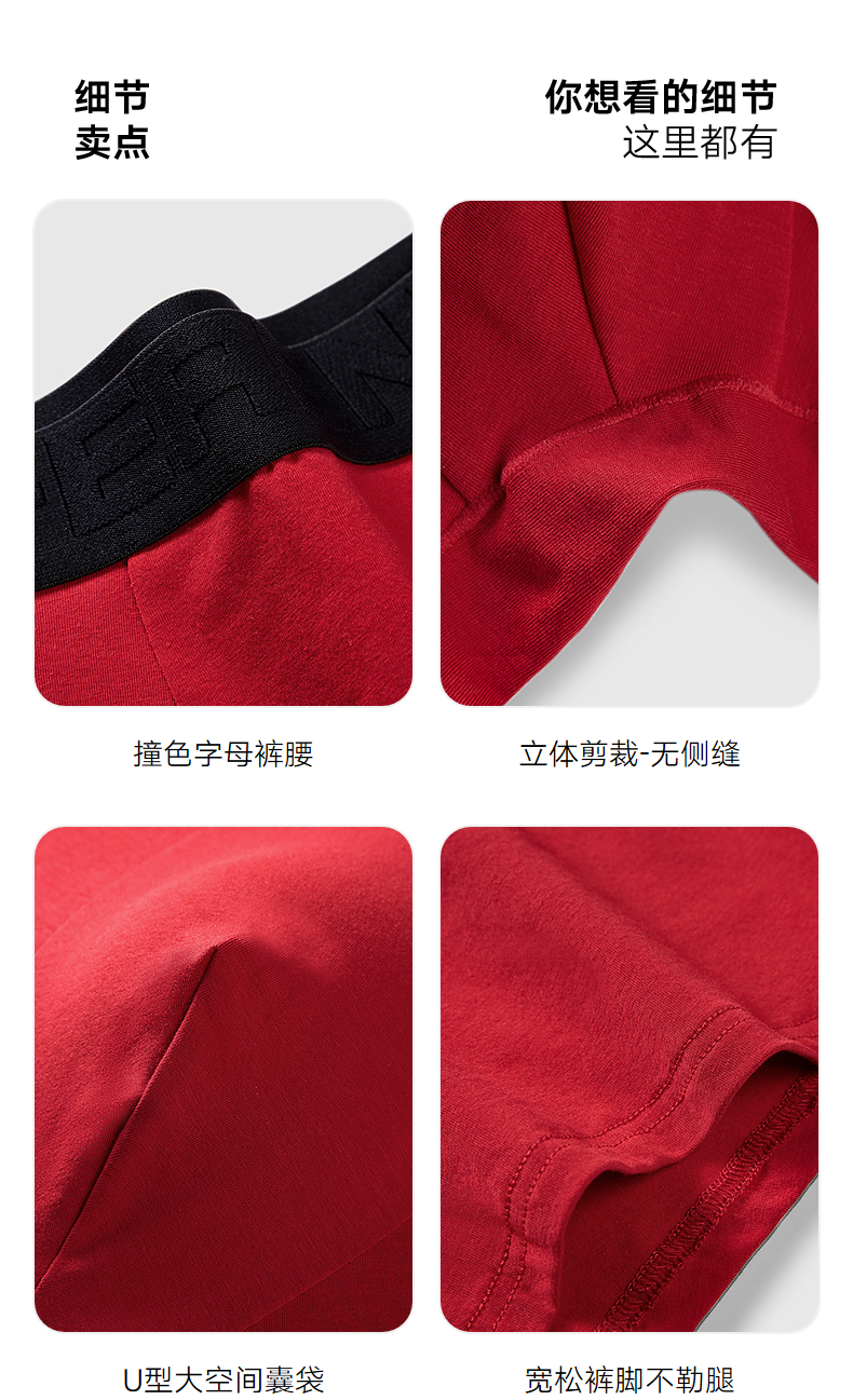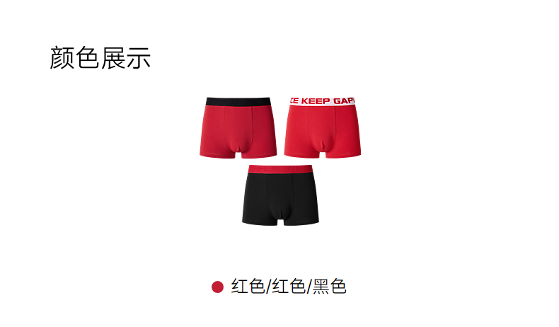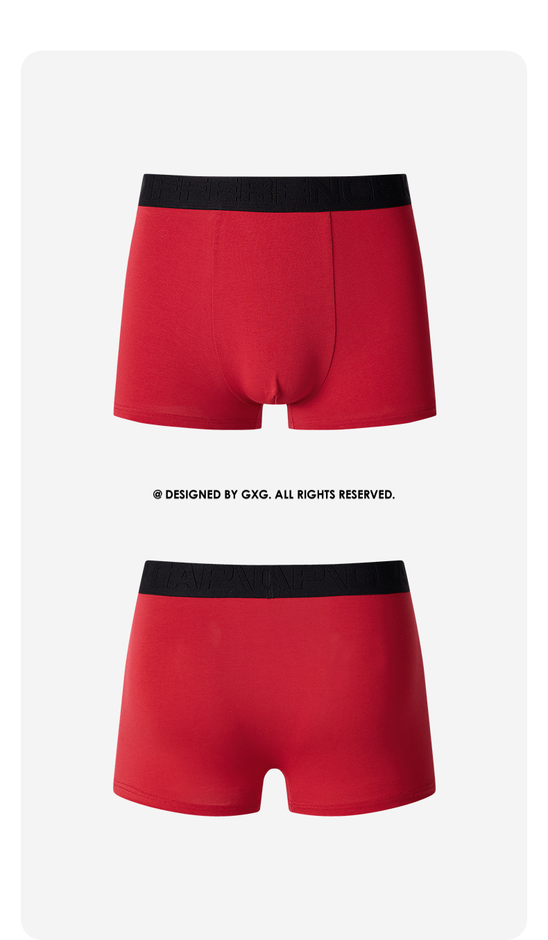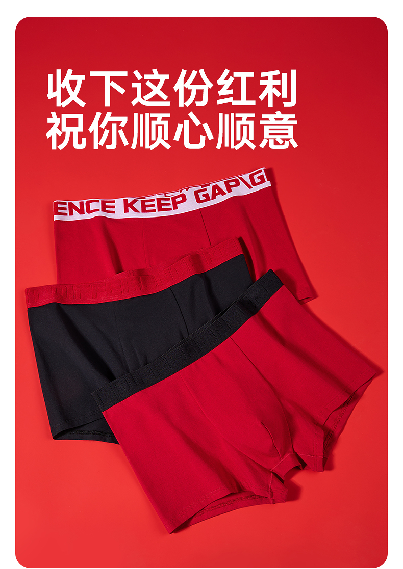 GXG男士内裤【3条装】棉质透气舒适内裤男本命年红色抑菌平角裤
