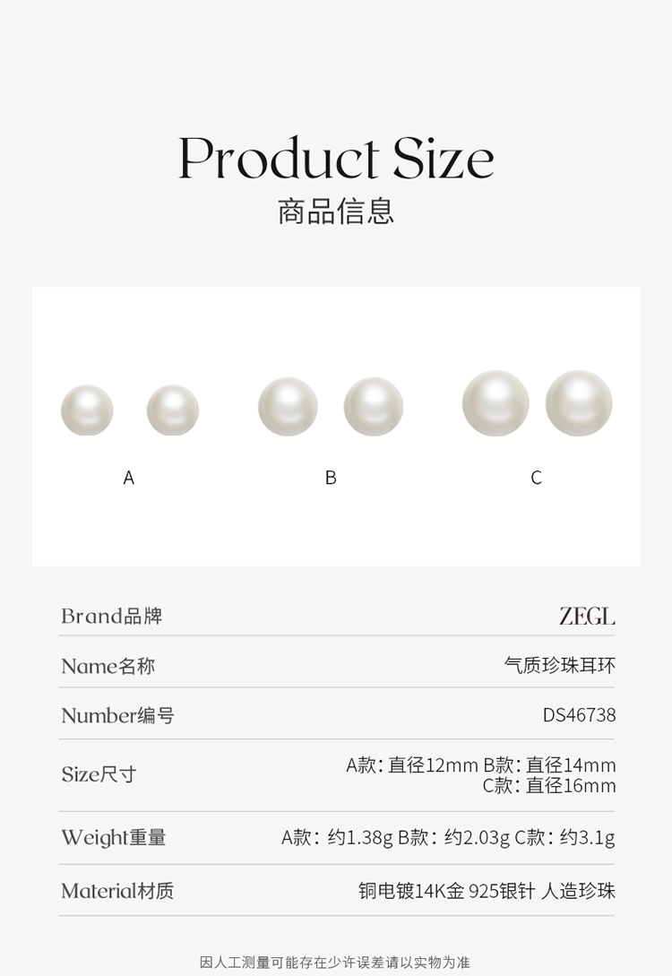 【西门大嫂】ZEGL法式人造大珍珠耳环女轻奢2023新款耳钉12mm银针耳饰品