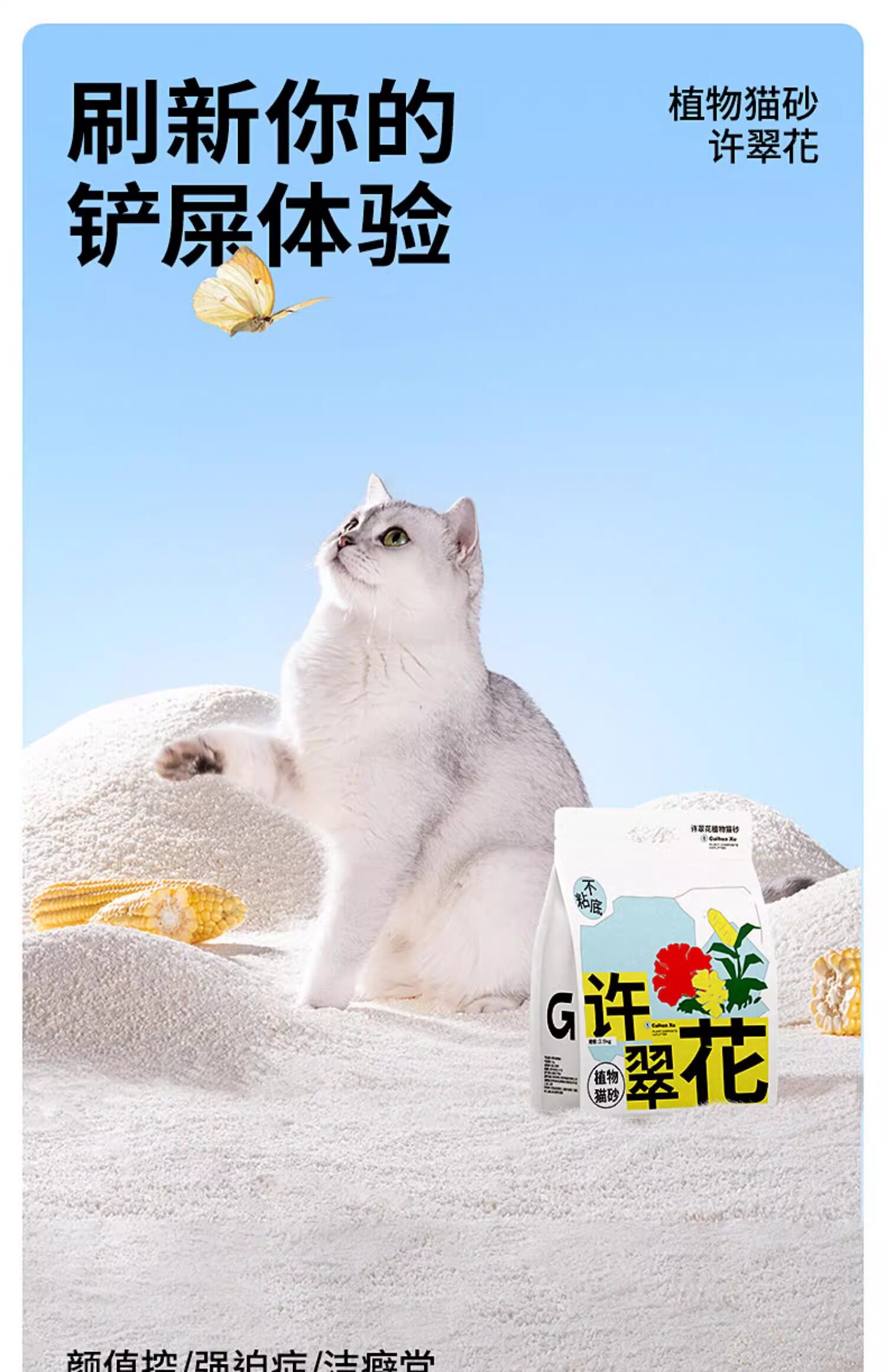 许翠花猫砂瞬吸结团不沾底植物猫砂除臭几近无尘猫砂2.5/10kg包邮