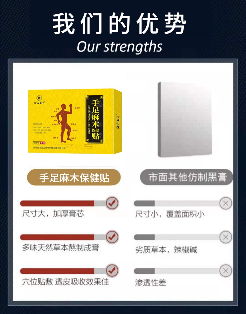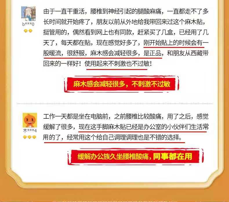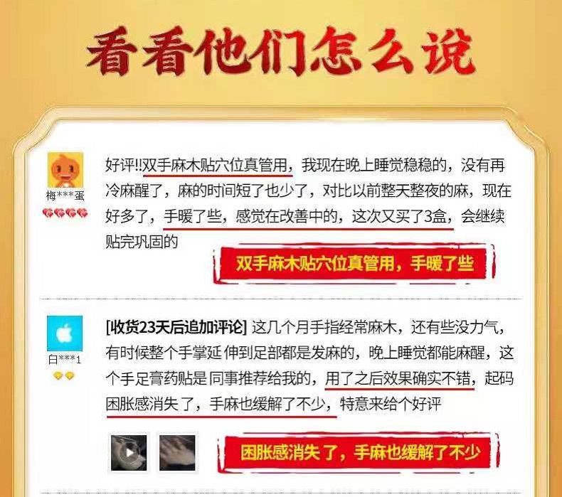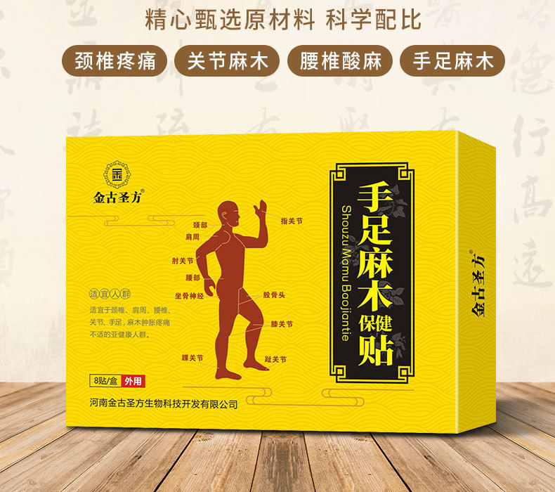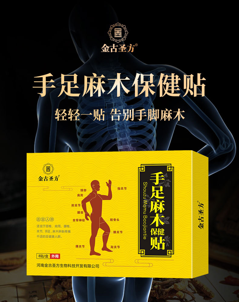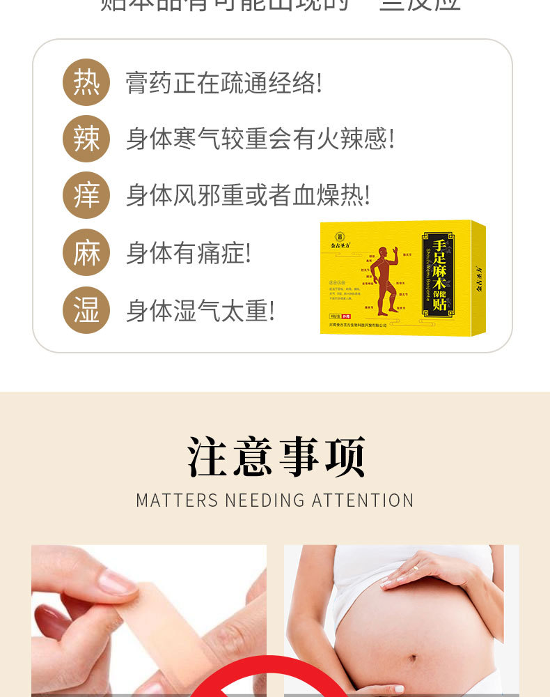 【手麻脚麻】手足麻木贴 疏通经络缓解酸胀 真材实料中药成分 亲肤透气膏体油量8贴/盒
