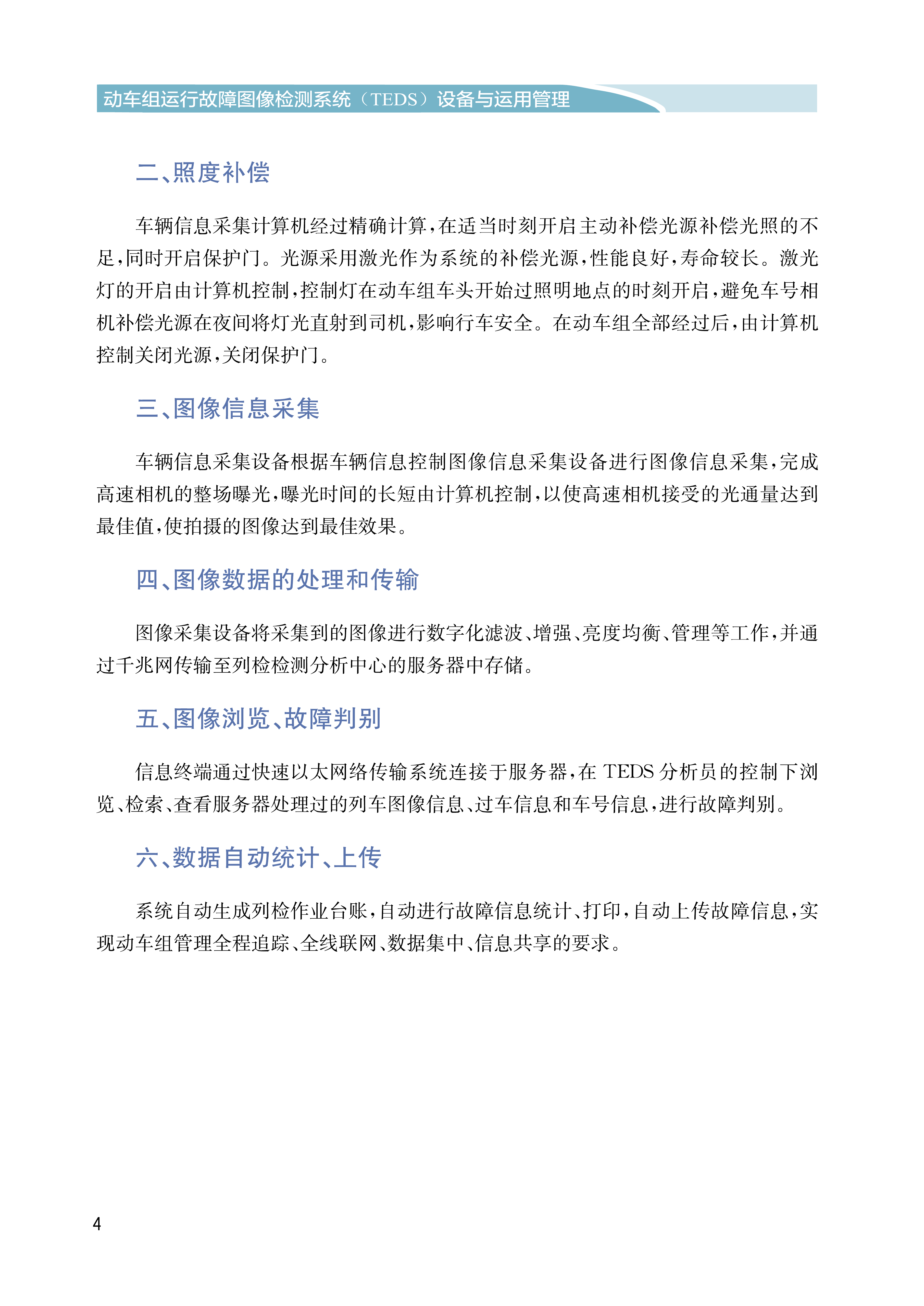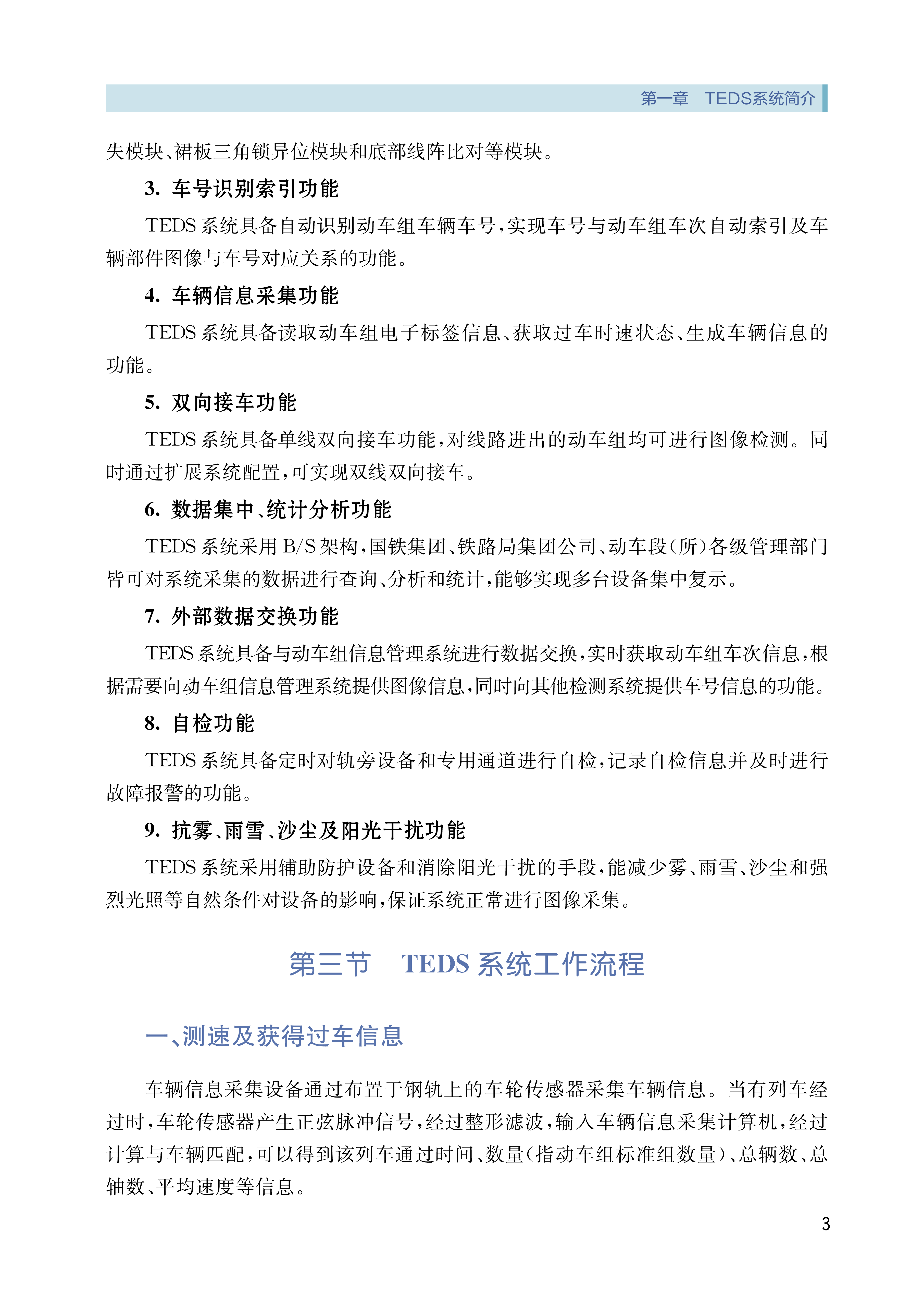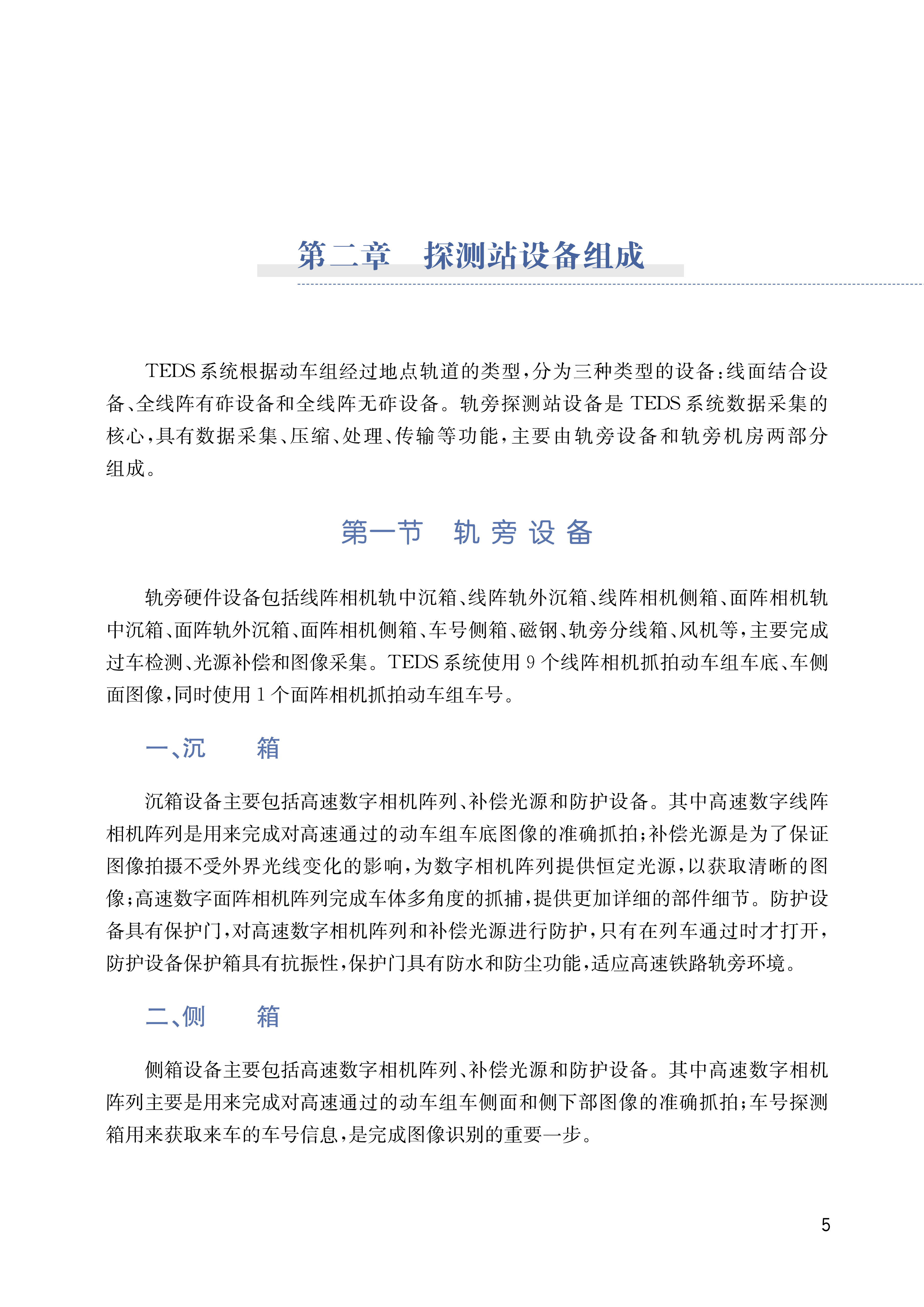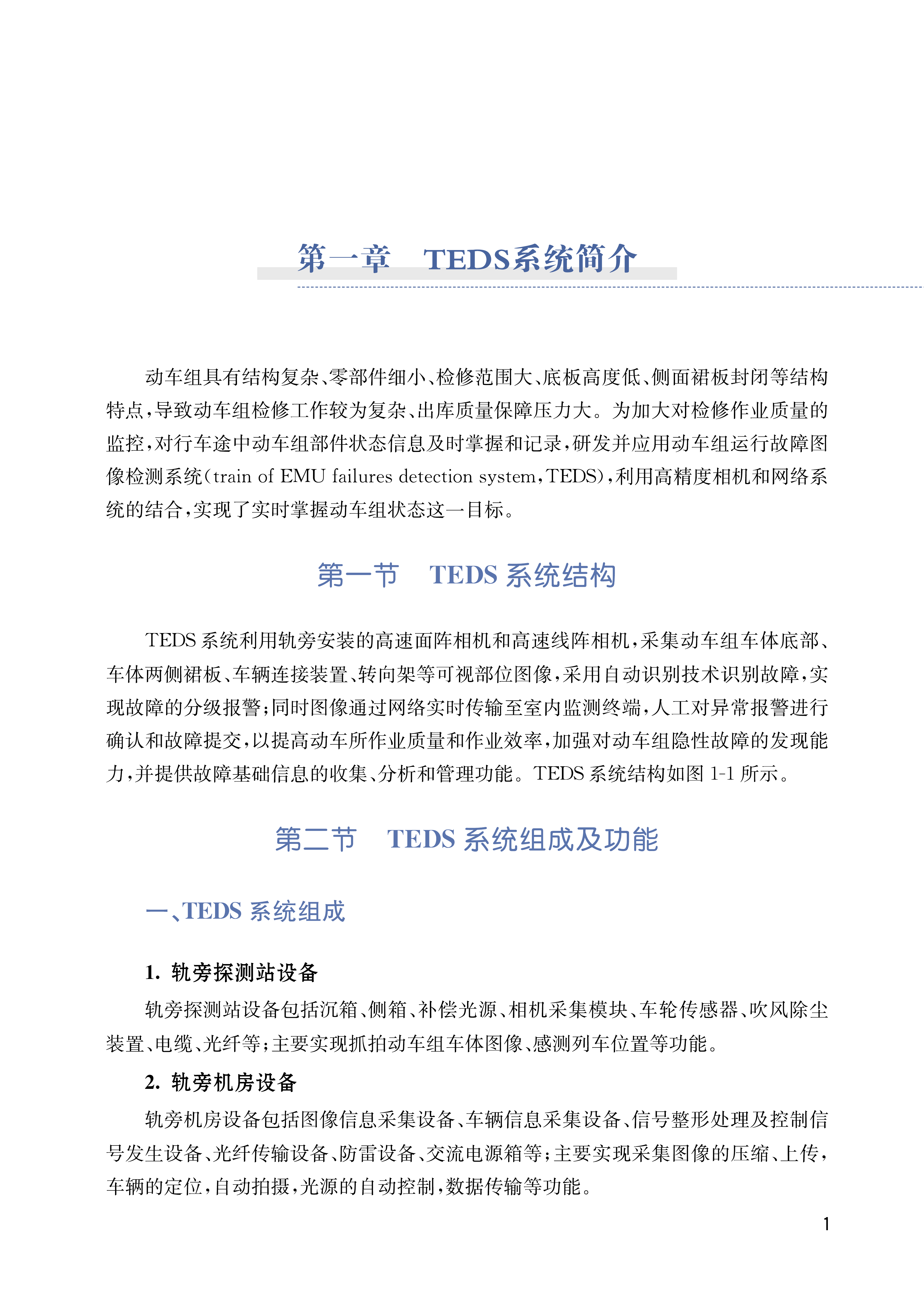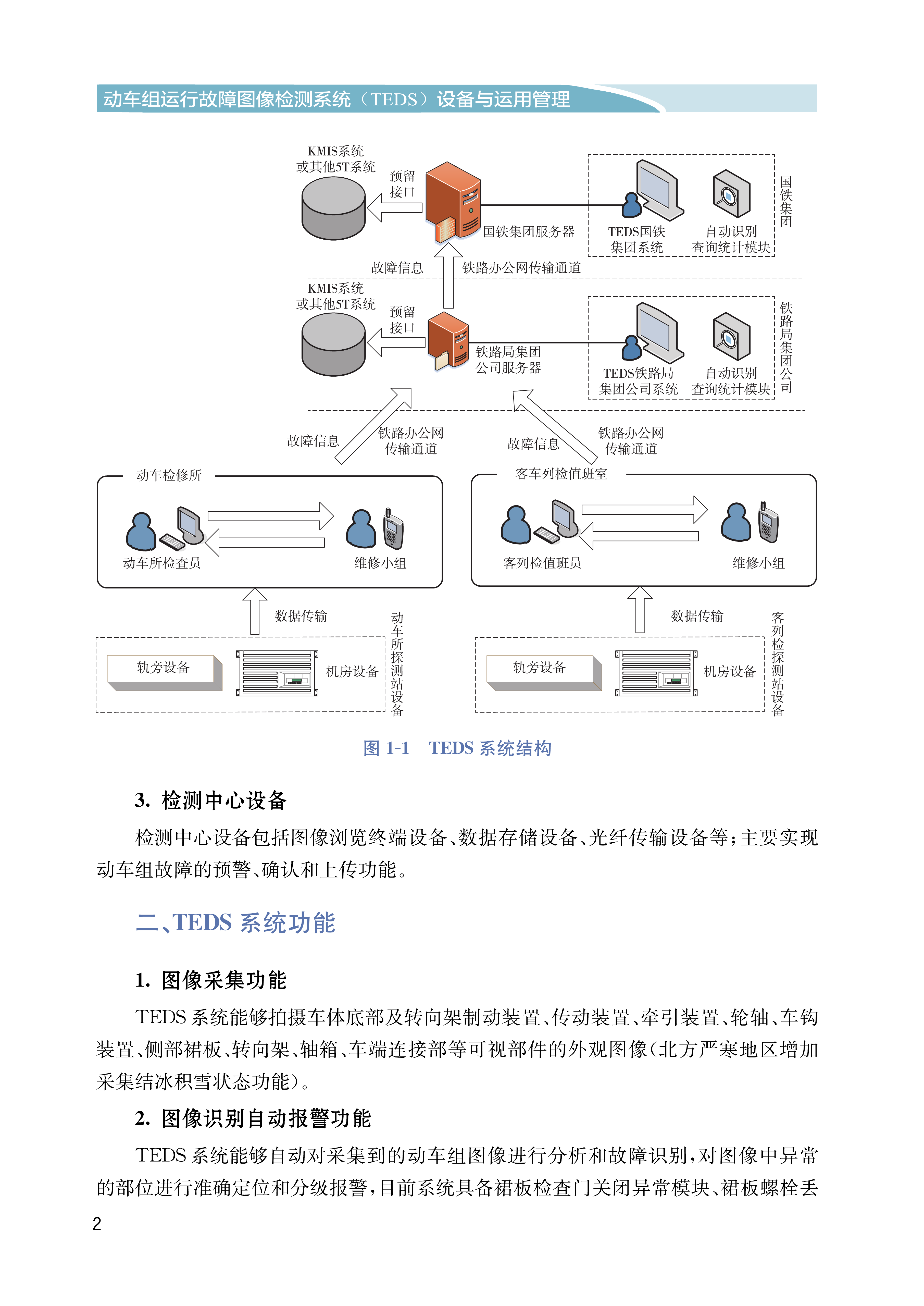 本书是动车组安全监测检测设备与运用管理系列丛书之一,依据国铁集团、郑州局集团有限公司相关动车组运行故障图像检测系统(TEDS)运用管理规章,从动车组运输生产安全和TEDS系统运用管理工作实际出发,紧贴现场生产和培训需求实际。本书内容主要包括TEDS系统简介、探测站设备组成、探测站设备的安装、系统设备维护、TEDS系统图像检查作业标准、TEDS系统故障分析处理、TEDS划线分析法、TEDS典型故障案例。本书可作为TEDS分析员、TEDS设备维修人员的岗位辅导培训用书,也可供相关专业人员学习使用。