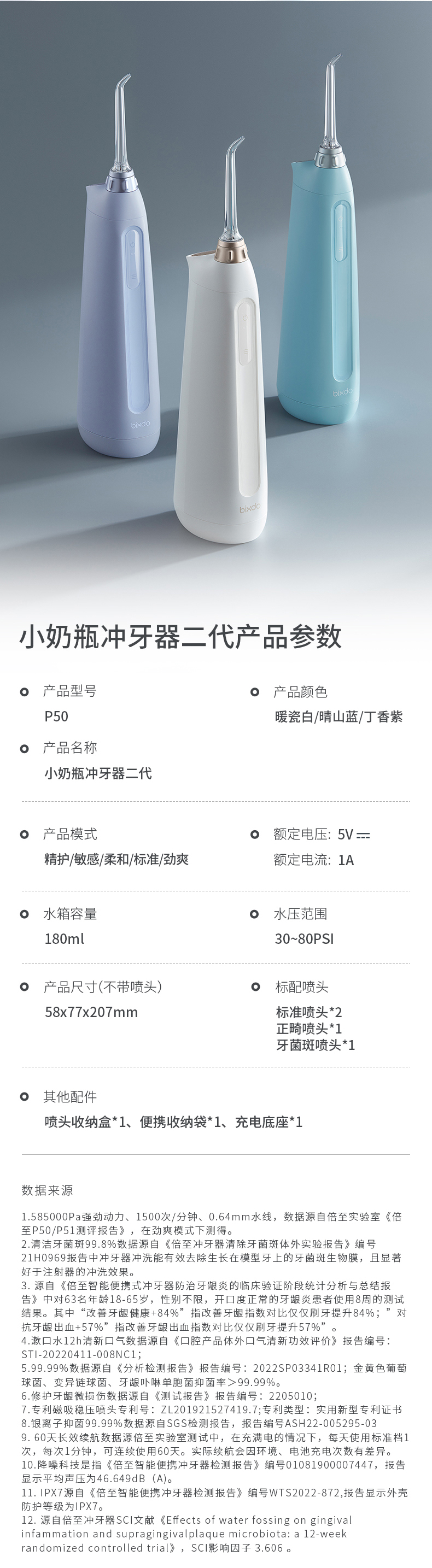 品牌直发 倍至 智能冲牙器 暖瓷白/晴空蓝/丁香紫