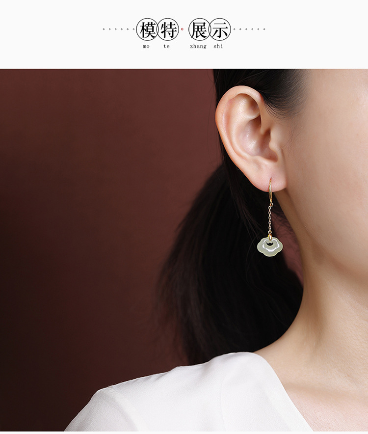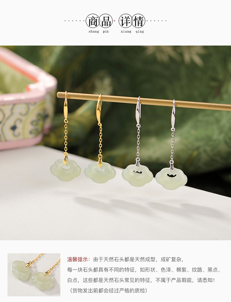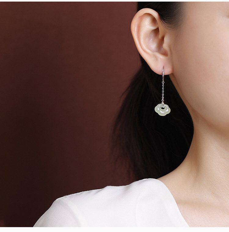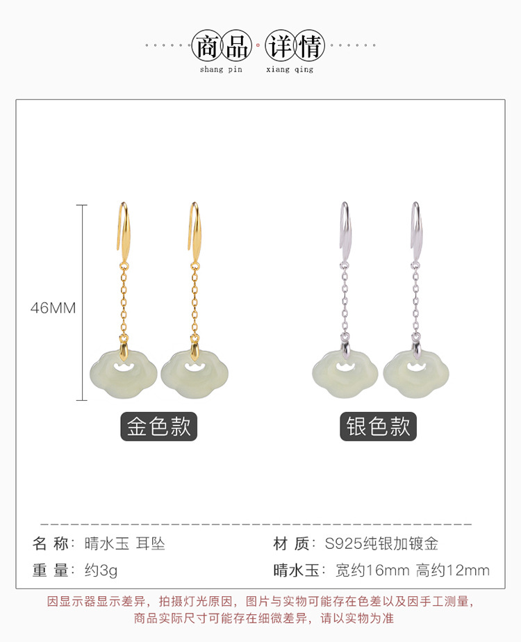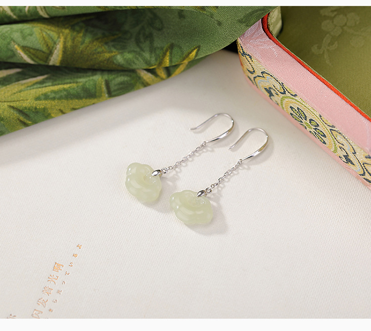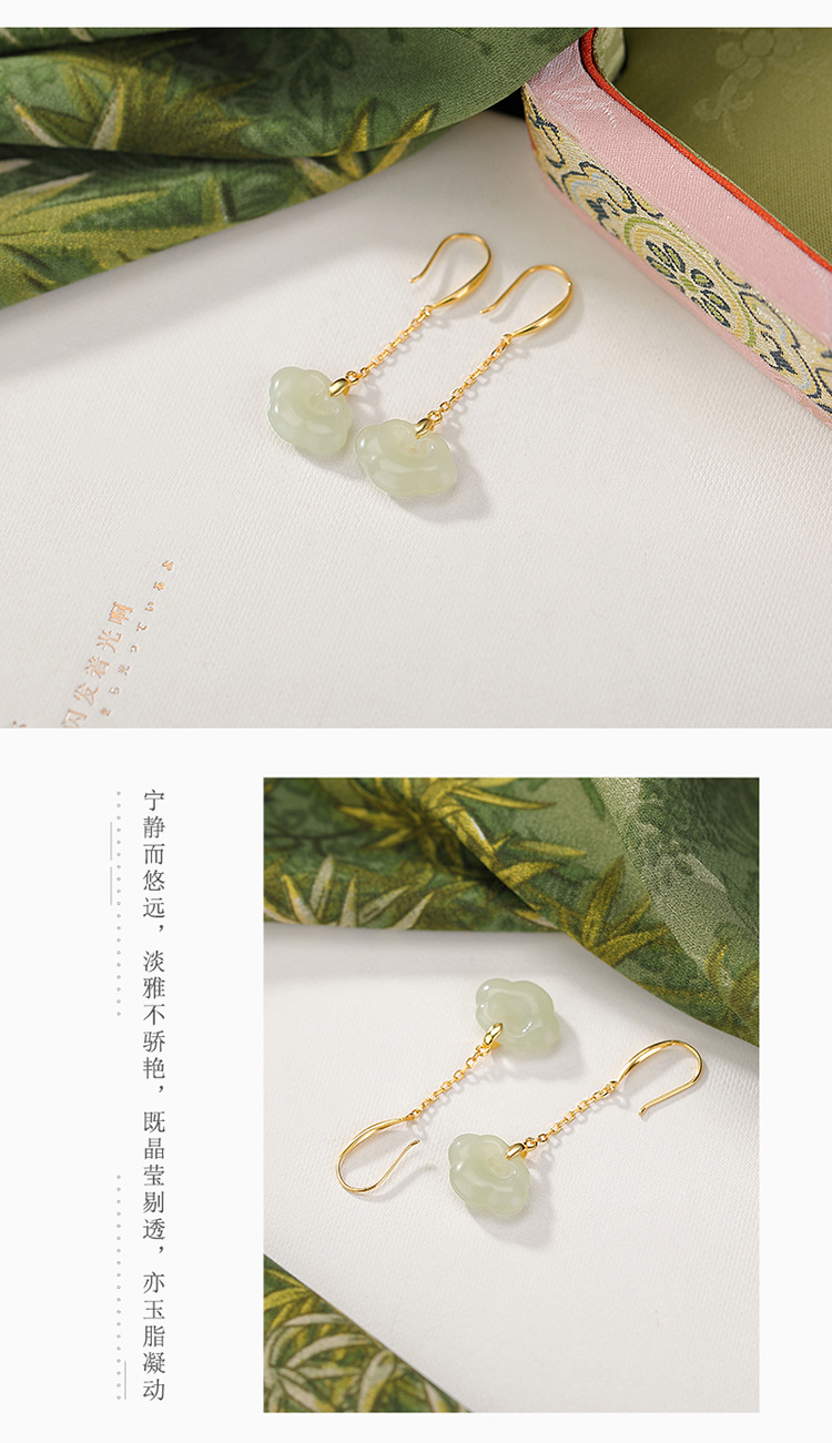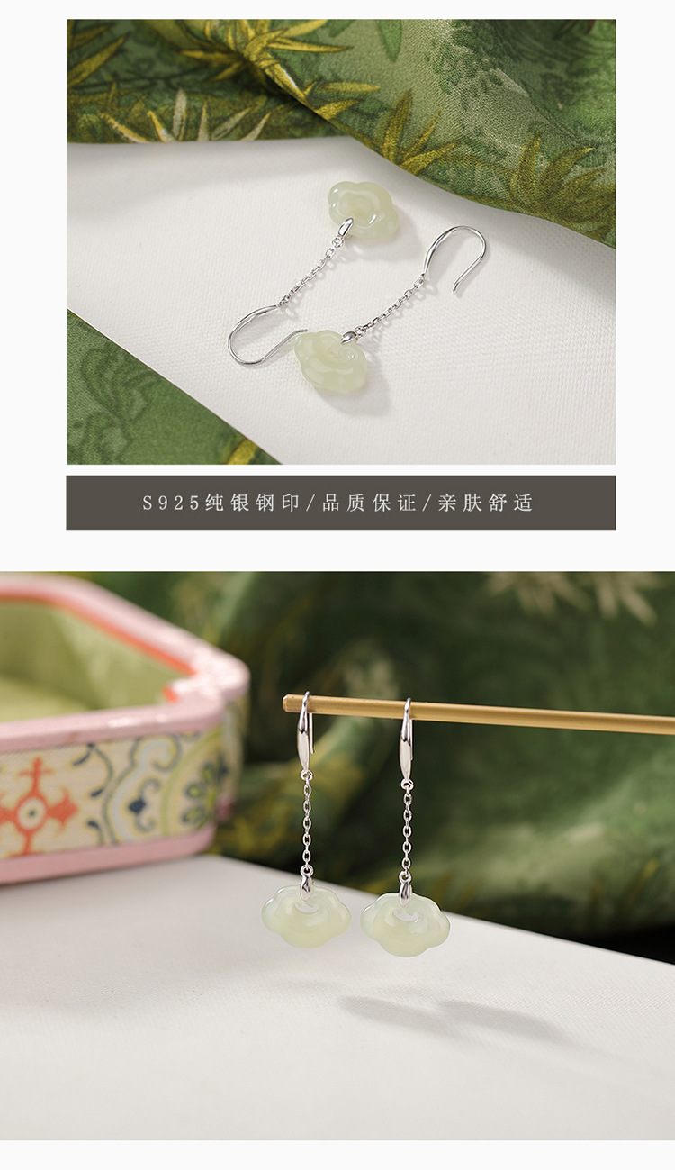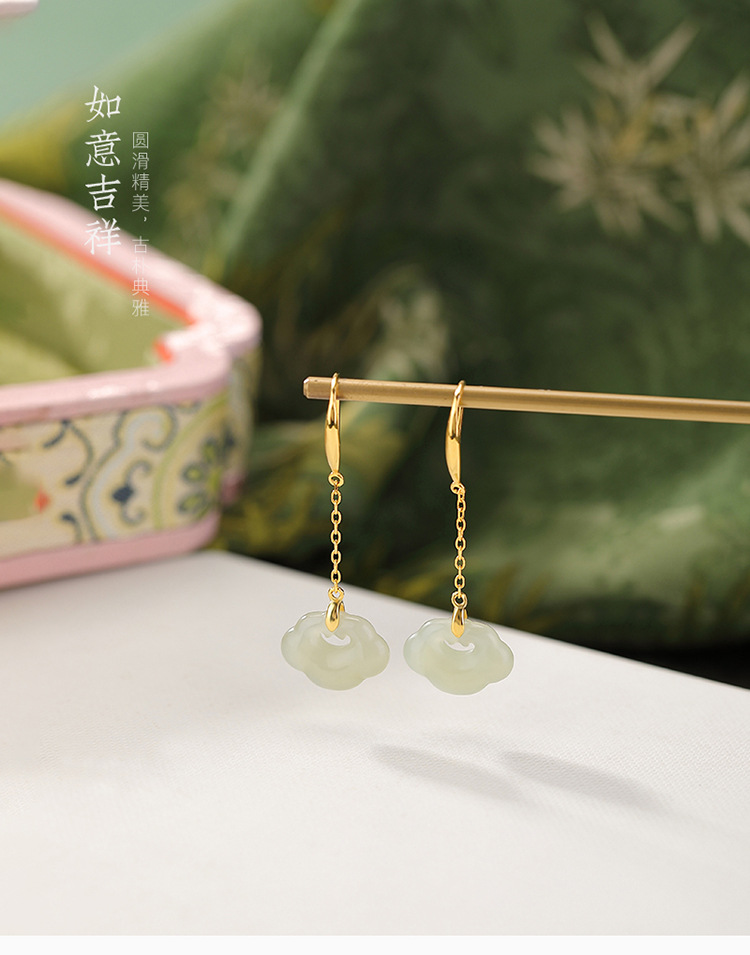 【如意窈窕】S925纯银天然和田玉晴水玉如意耳饰【CW-EG02349】