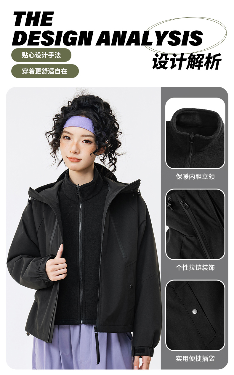 LUCKY DEER幸运鹿秋冬季女士潮流短款三合一户外风衣