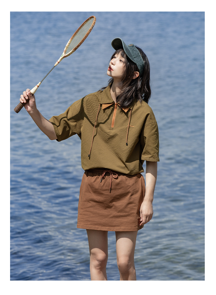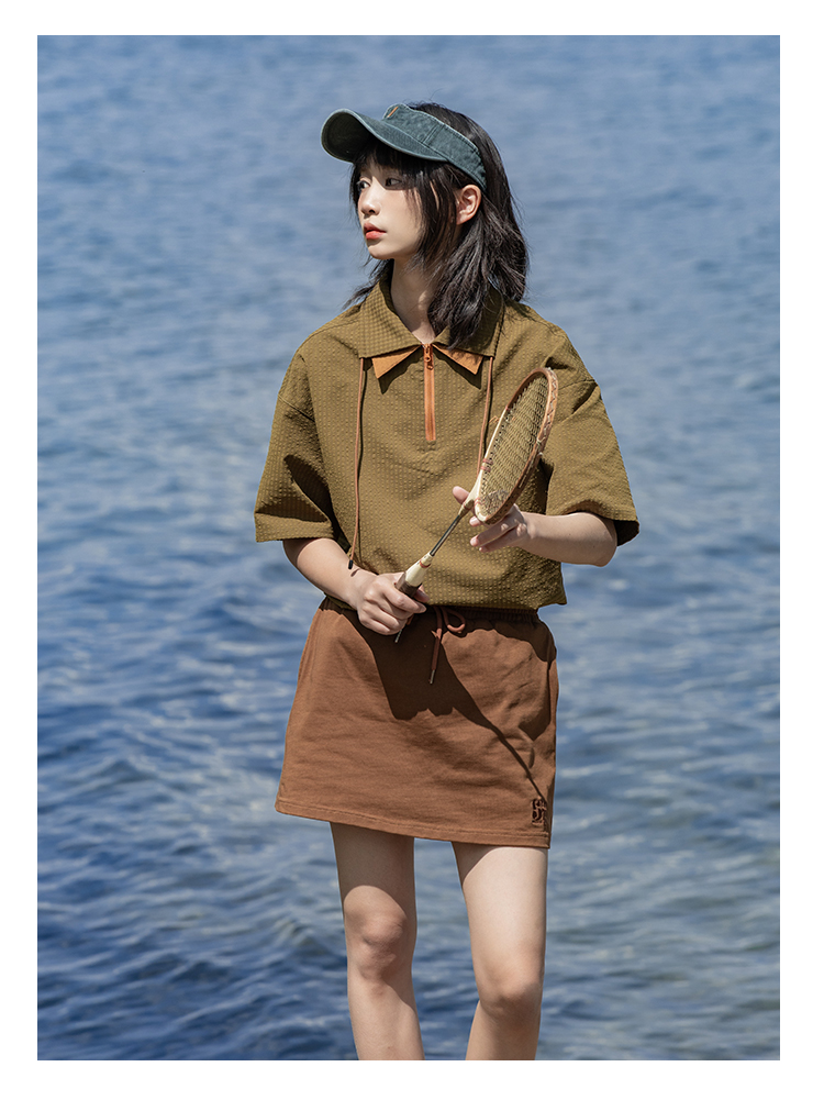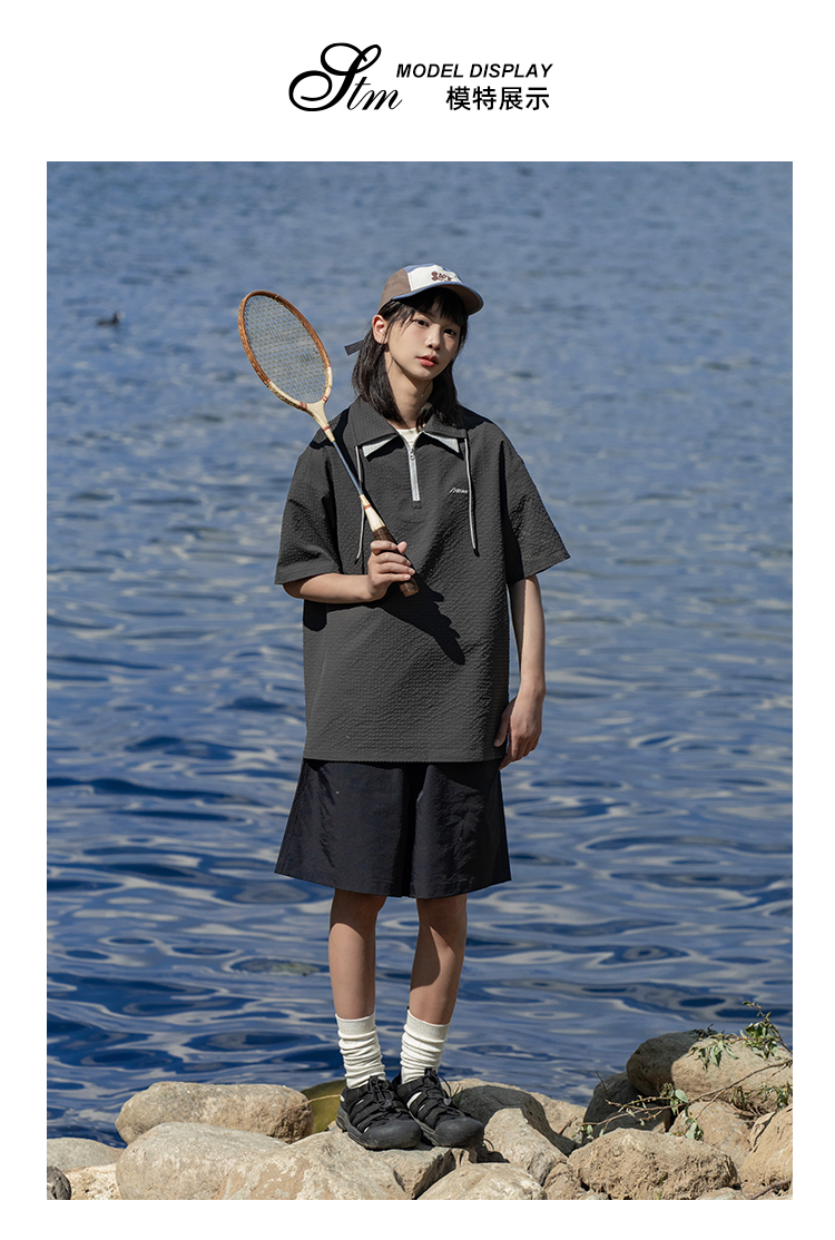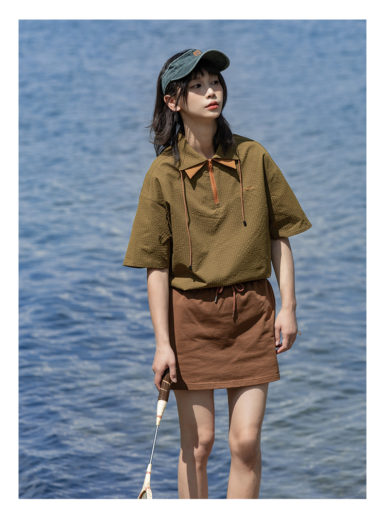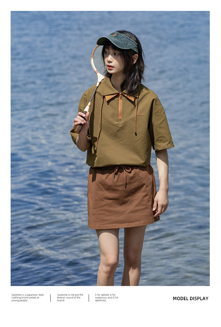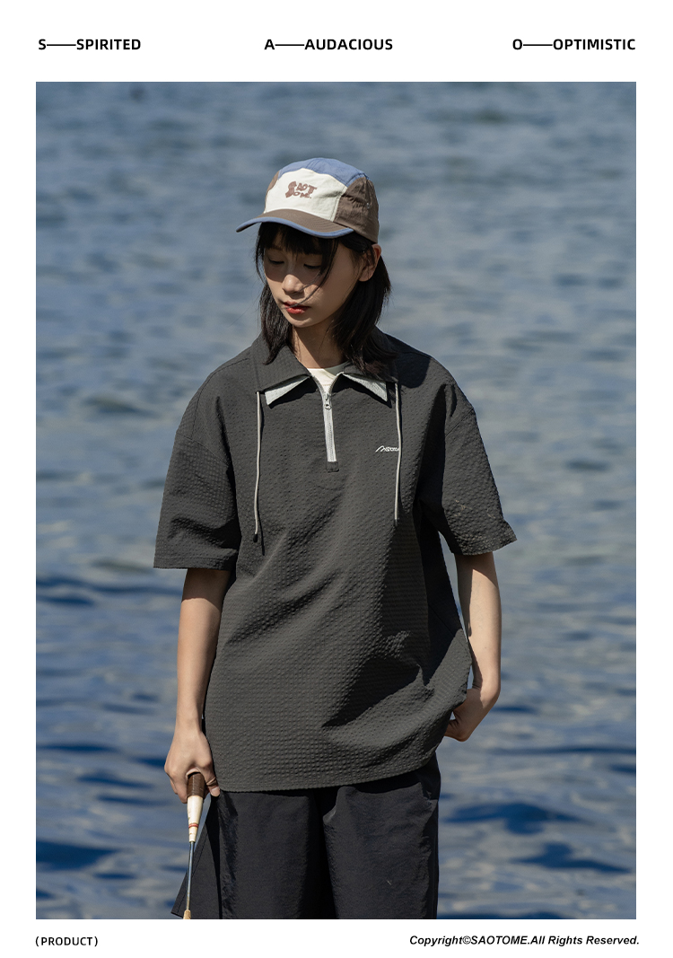 早乙女惠子saotome/STMPL242074/撞色立体绣花双层领polo短袖T恤